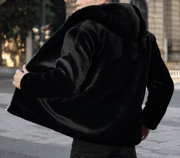 新作 フェイクファーコート メンズ ブルゾン ビジネス 紳士 アウター カジュアル 防寒 冬用 フード付き 黒/3XL