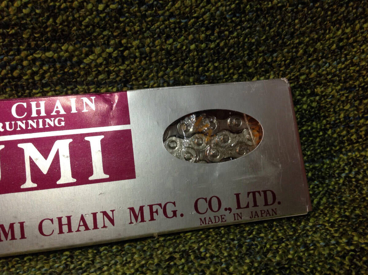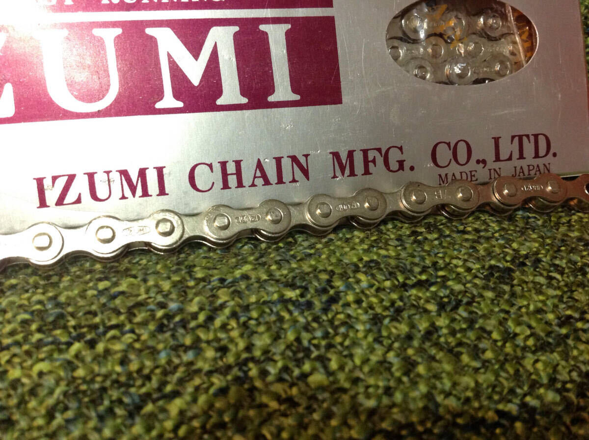 ご覧いただきありがとうございます。 Made in JAPAN IZUMI 厚歯チェーン シングル BMX Made in JAPANピスト、BMX用 厚歯チェーン IZUMI【イズミ】シングルチェーンになります 3枚目の写真は私が使用したときの残りのチェーンを写したもので、付属はしませんが、参考にしてください。 (発送する商品は未開封のものです) シンプルでいて、尚且つ頑丈な、私が思うに一番カッコいいシングルチェーンです。 *箱に少しだけいたみがございます (チェーン本体に影響はございません) 新品の未使用品 長さも110L あるので充分な長さかと思います。 *130Lが必要な方はコメントください (電動自転車等に) 130L→2500円(送料込み)にて手配いたします。 ゆうパケットミニ にて 送料無料 でお送りします。 | |||