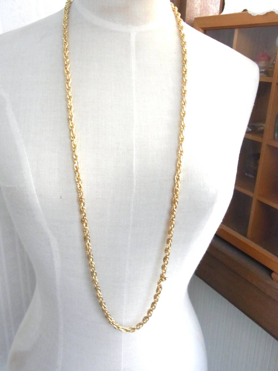 豪華感 ゴージャス感のある金色 ゴールドトーンのツイストデザインのチェーン お洒落に使える素敵なロングネックレス◆◆
