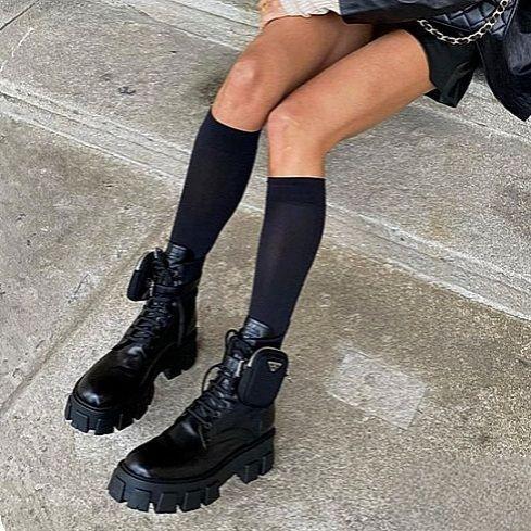 新品そっくりさん PRADA プラダ モノリス ポーチ付 ブーツ38.5 | |||||||||||