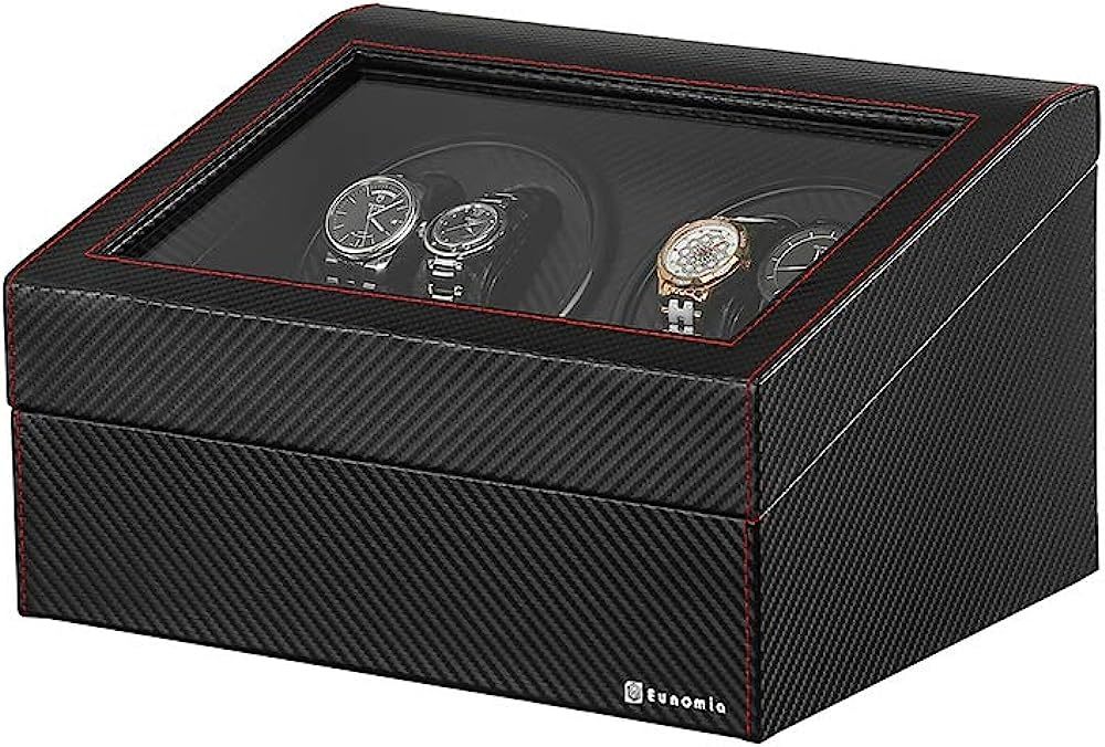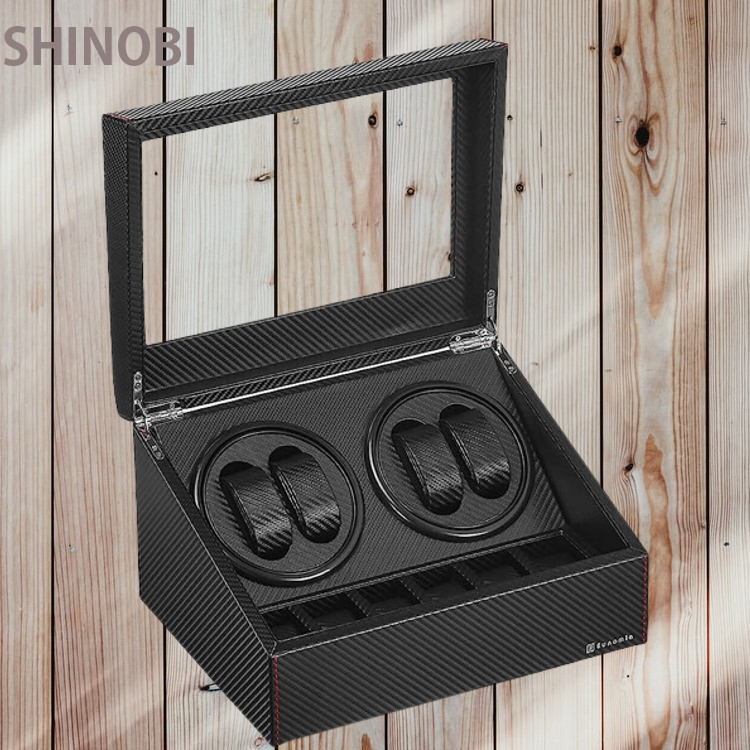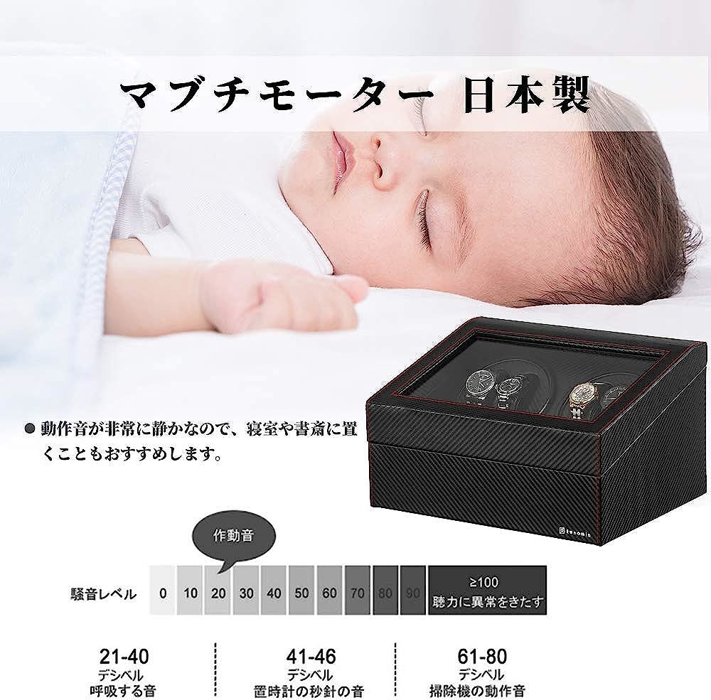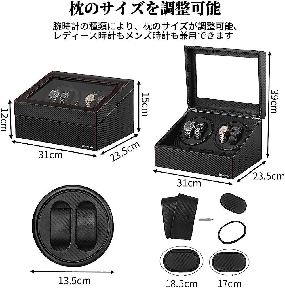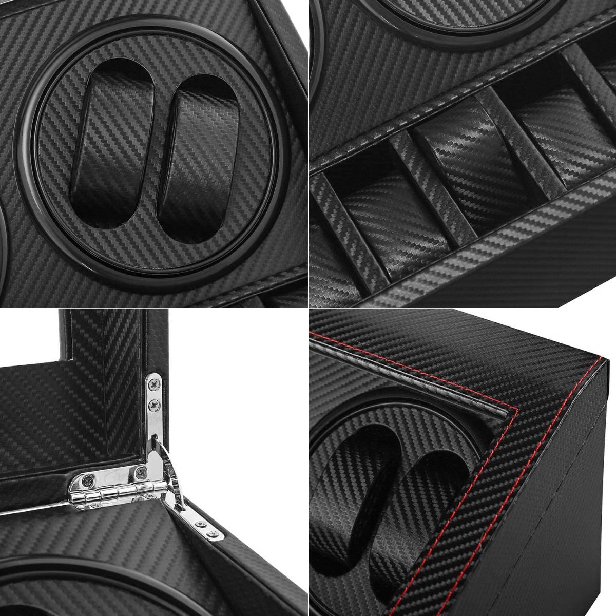 4本巻き+6本収納スペース ワインディングマシーン 日本製マブチモーター 自動巻き時計 収納機能 高級PU皮革 (カーボン調 ブラック)