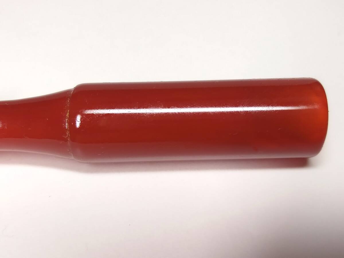 ♪即決【壽】長さ83mm天然AAA級極品特大朱赤纏絲水胆瑪瑙高彫パイプ 収蔵未使用品 No4