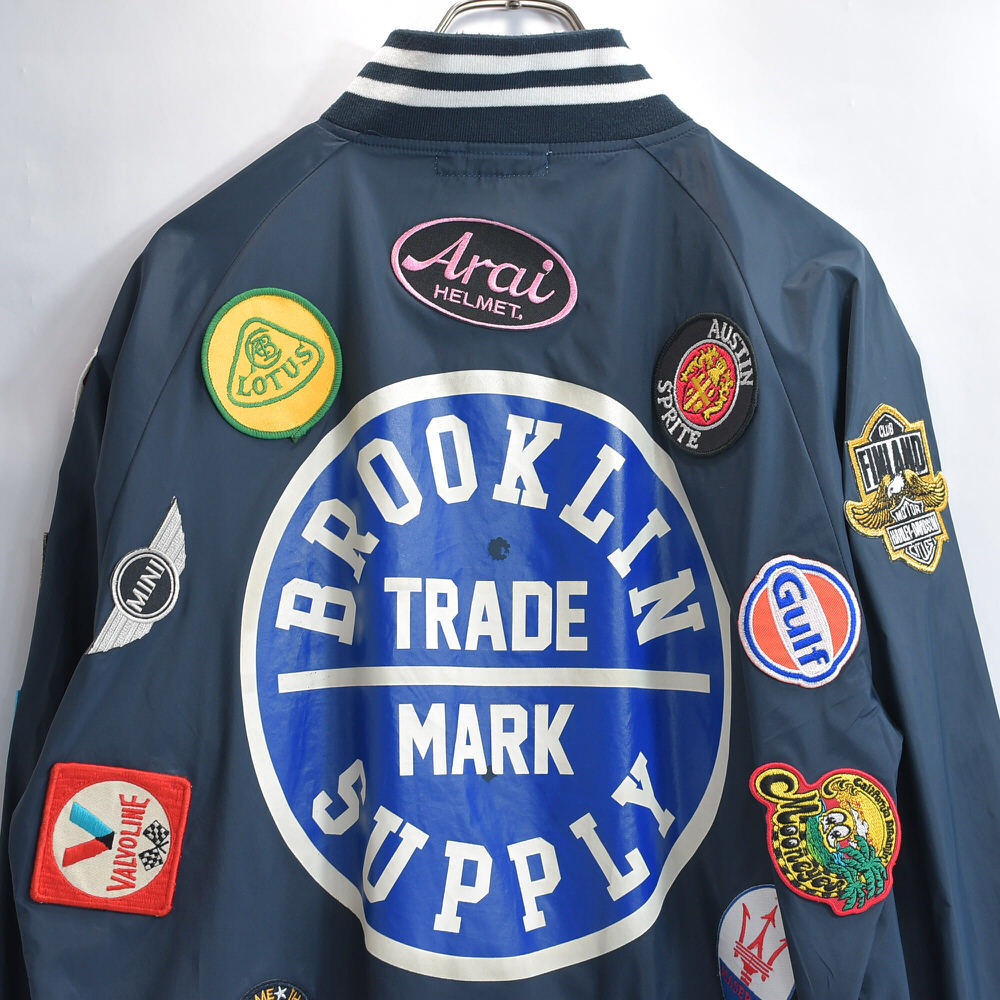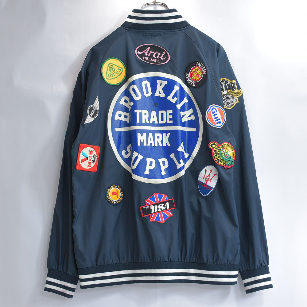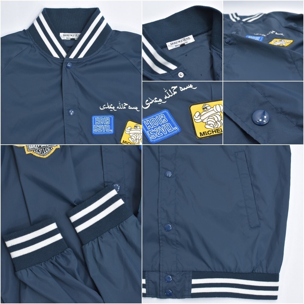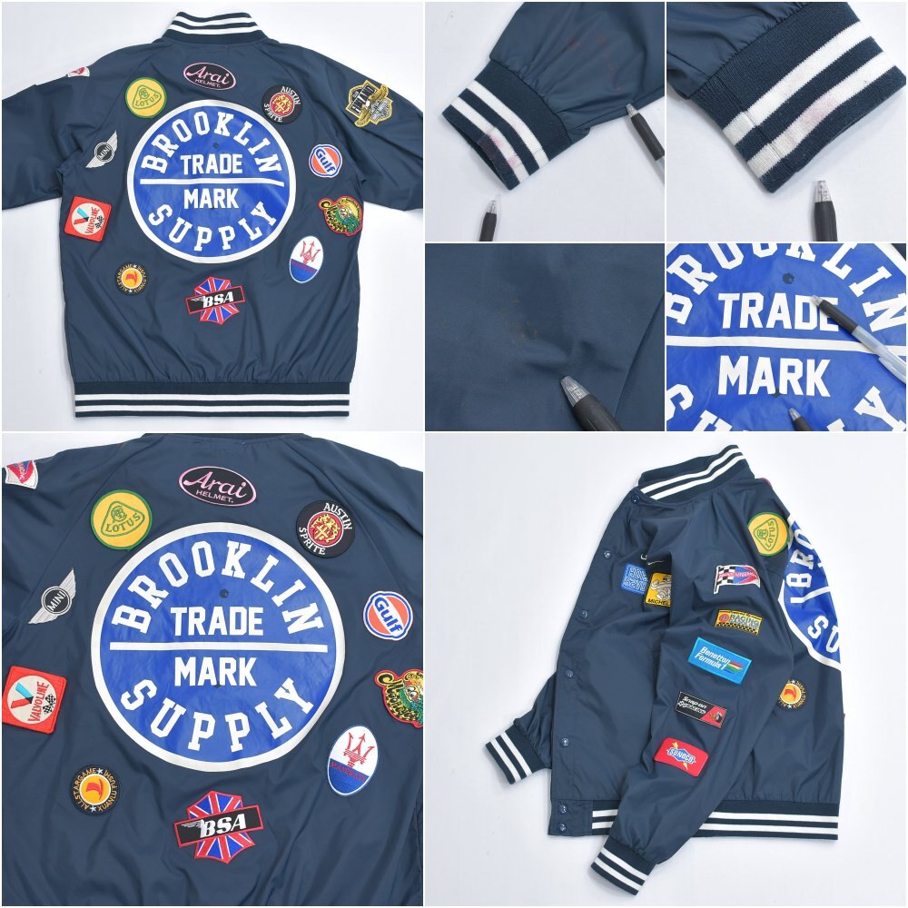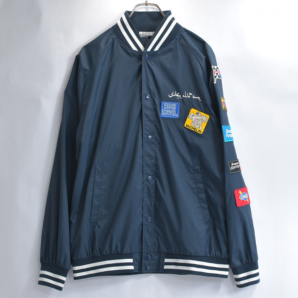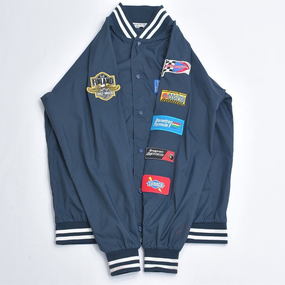 Used パッチワーク ワッペンカスタム ナイロン ジャケット ジャンパー アウター ヴィンテージ ブルゾン スタジャン ネイビービンテージ 古着 メンズLサイズ