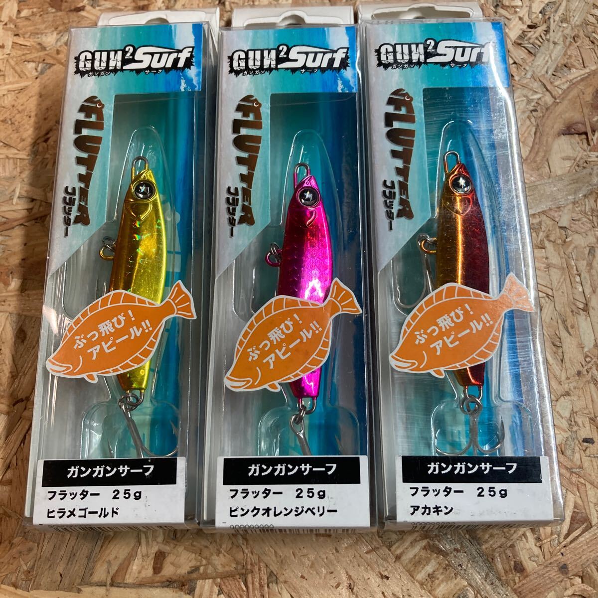 即決 3個セット 25g ヒラメゴールド、 ピンクオレンジベリー、アカキン フラッター ガンガンサーフ オーシャンルーラー