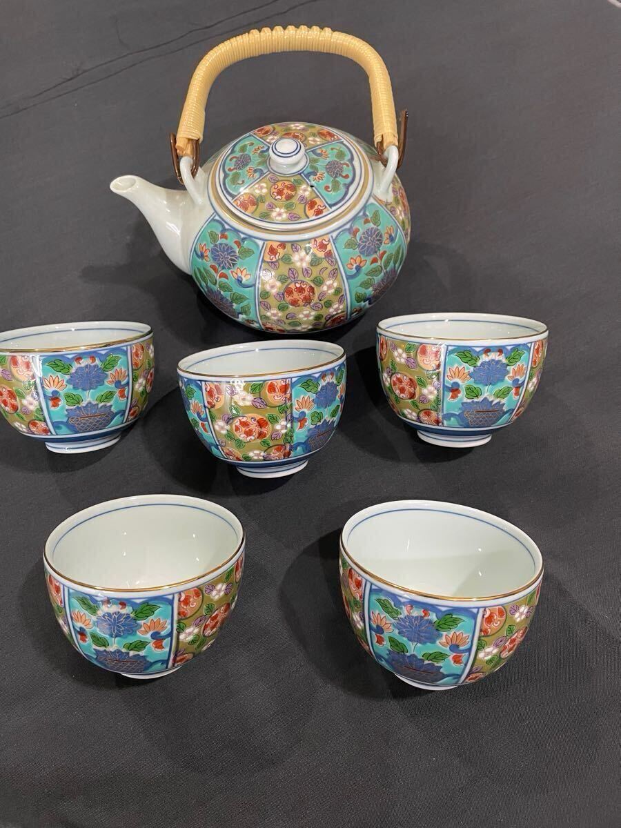 更紗古伊万里 茶器揃 急須 茶碗5客