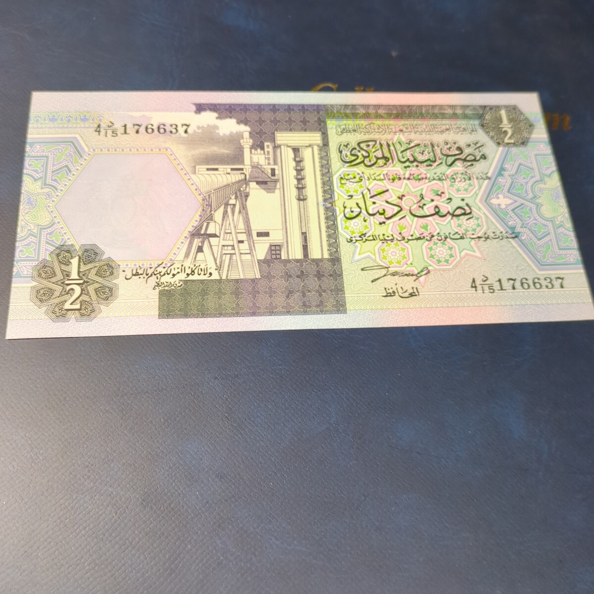 リビア紙幣カダフィー政権時代  1/2ディナール未使用紙幣
