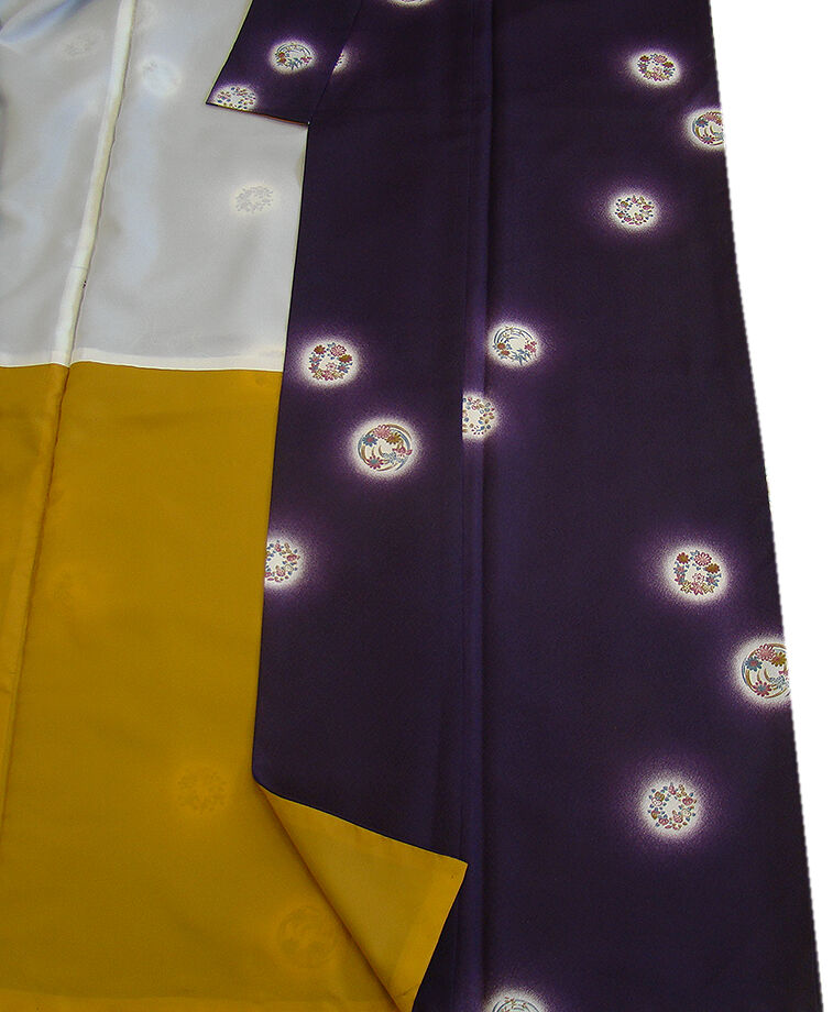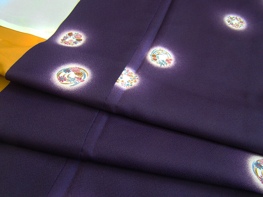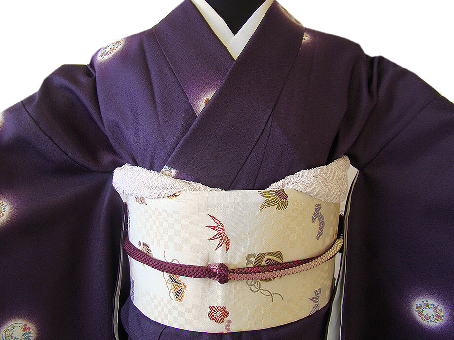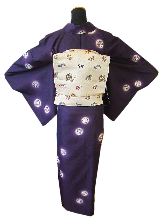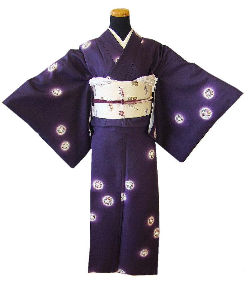 | 商品説明 | こちらのお品は「袷」でございますので、10月~5月にお召頂ければと思います。 とてもしなやかな滑らかな手触りの着心地良いポリエステルの生地、 深紫色地に花丸文の染柄、 八掛は金茶色、幅広い年代のお方にお召頂けます。 帯はしなやかで扱い易く結び易い袋なごや帯(六通柄) 象牙色地に市松柄の地模様入りに宝尽し、松竹梅の織柄が日本情緒ある帯姿を謳っております。 帯揚げは絞り、白藤色地に絞り柄、 帯〆は平組、濃い似せ紫色地に編み込みの組紐となっております。 |