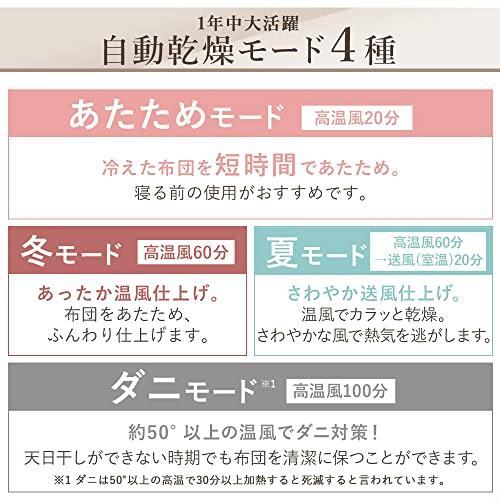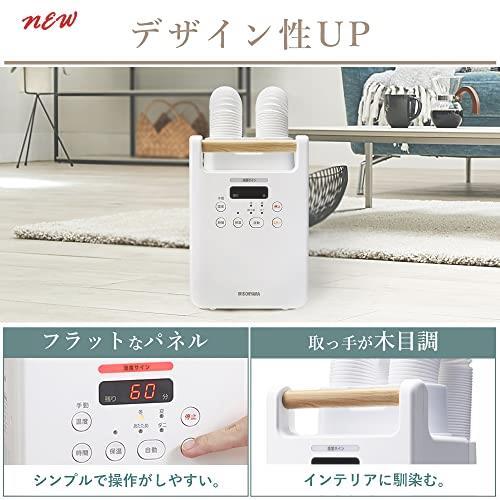 | ブランド:アイリスオーヤマ(IRIS OHYAMA) カラー:3)ツインノズル/デザインタイプ 温風でふとんをあたため、湿気とカラリととばす「カラリエ」。ツインノズルだから2つの布団も一気に同時あたため&乾燥! シンプルでオシャレ、デザイン性UP。フラットなパネルはシンプルで操作がしやすい。取っ手が木目調で、インテリアに馴染む。立体ノズルにサイドフラップが付くことで安定感がUP。立体型フラップが布団の中で大きな空間を作り、隅々まで風を届けます。立体ノズルとツインノズルで2枚の布団を一気にあたため。心地よく眠れる「保温モード」搭載。自動モードの冬またはあたための運転終了後、間欠運転を2時間繰り返し、お休みに適した温度を保つことができます。1年中大活躍、自動乾燥モード4種。あたためモード、冬モード、夏モード、ダニモードでオールシーズン快適な布団に。風を3段階使い分ける。高温・低温:2種類の温風で、好みや状況に応じて使い分けられます。送風:風を送り熱気を取り除きます。8段階でタイマーを設定できます。15分から180分まで設定可能。タイマーが0になると自動で運転を停止します。過熱を防ぐ安全装置搭載。温度の上がり過ぎを防ぐ3種類の安全装置を搭載で安心してお使いいただけます。靴乾燥にも使える2WAY。「布団」の他に「靴」乾燥も可能で便利な1台2役。付属のアタッチメントを取り付けることで、2足を一気に乾燥できます。スニーカーやブーツ、革靴にも対応。コンパクトなので収納もスッキリ。ホースも本体に収納できます。軽々と持ち運べるので、寝室間の移動もらくちん。 商品サイズ(cm)(ホース折りたたみ時):幅約16.6×奥行約19.6×高さ約32●商品質量:約2.4kg 電源:AC100V(50/60Hz共用)●消費電力(高温風時):760W タイマー:15・30・45・60・75・90・120・180分●コードの長さ:約1.9m 安全装置:温度センサー、サーモスタット、温度ヒューズ 主要材質:ABS樹脂、ポリプロピレン●付属品:くつ乾燥アタッチメント×2 | |||