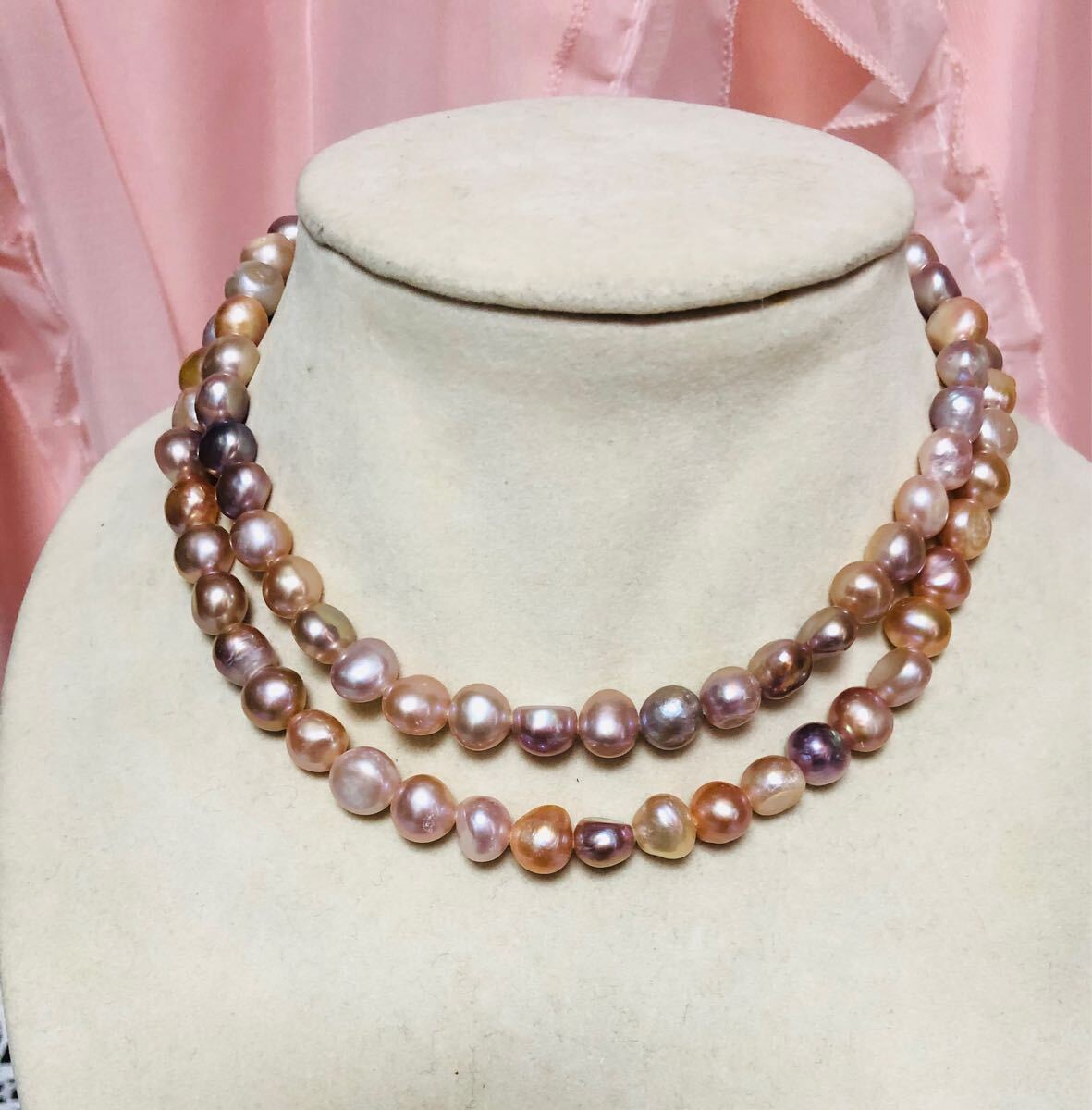 ●商品名:大粒♪9-10mm珍しい天然淡水真珠バロックパールネックレス