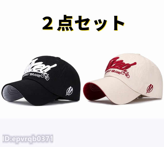 2点セット 野球帽 新品 刺繍 英文字 ゴルフキャップ メンズ キャスケット 帽子 柄物 男女兼用 フリーサイズ 調節可能 黒/ベージュ