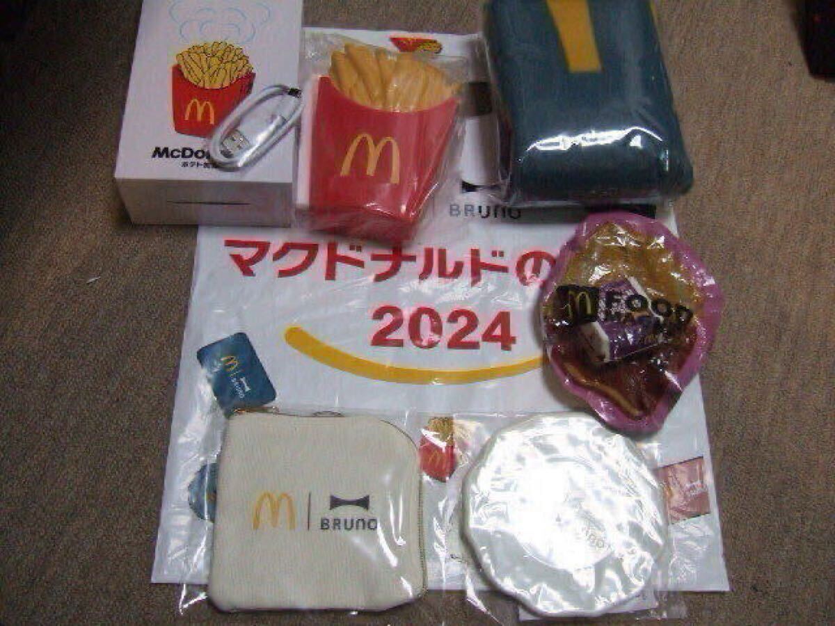送料込 マクドナルド福袋2024 BRUNOコラボグッズ ポテト型加湿器 コインポーチ白 ブランケット青 ミニプレート白 ナゲット マグネット付き