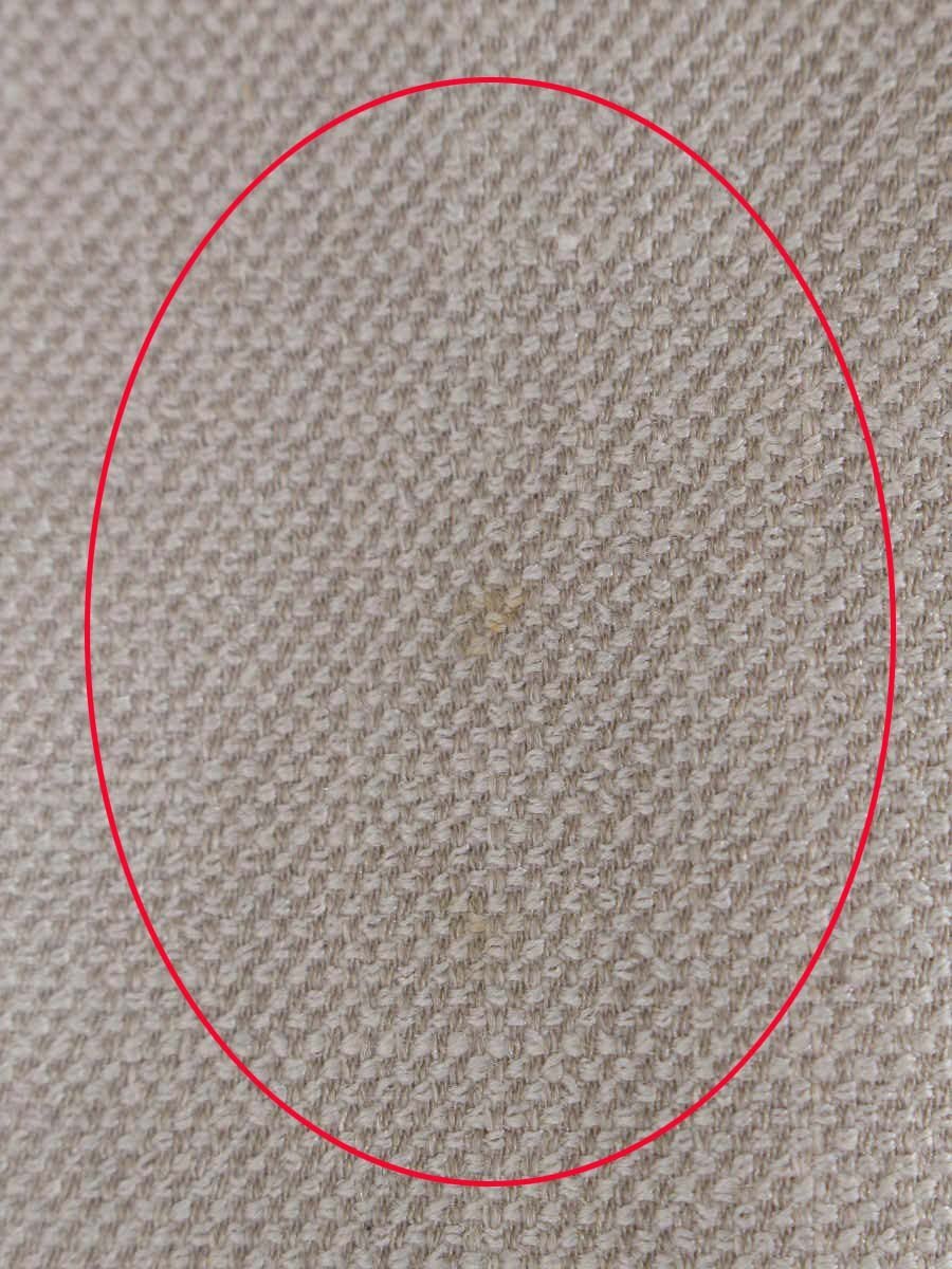 【汚れ・シミ】正面右上部、正面右裾付近、正面左裾付近などに色付きがございます。