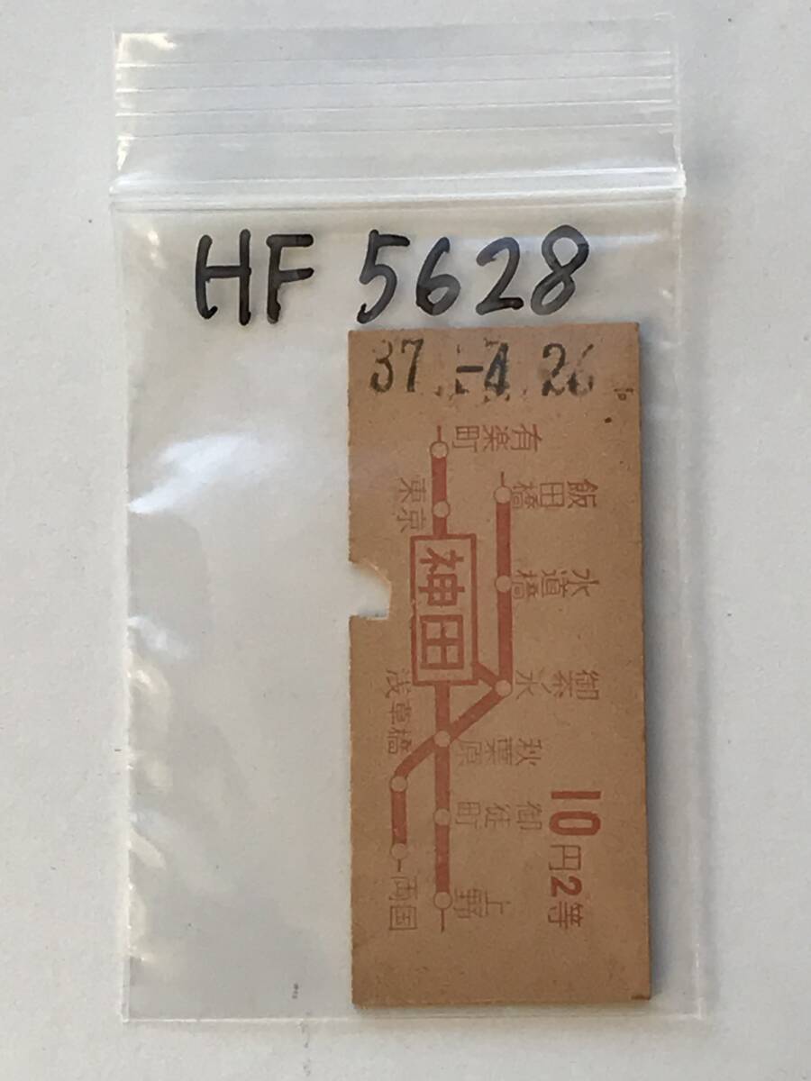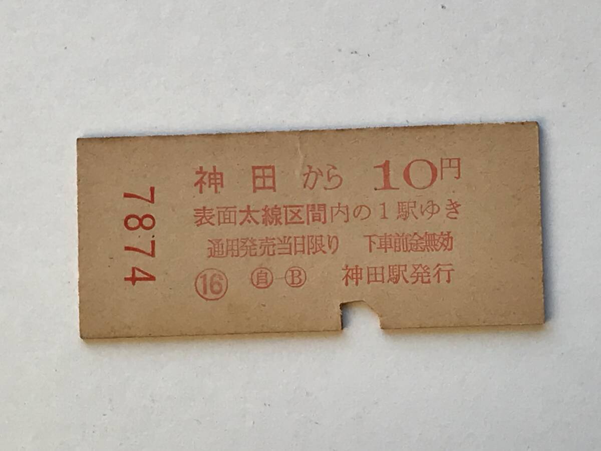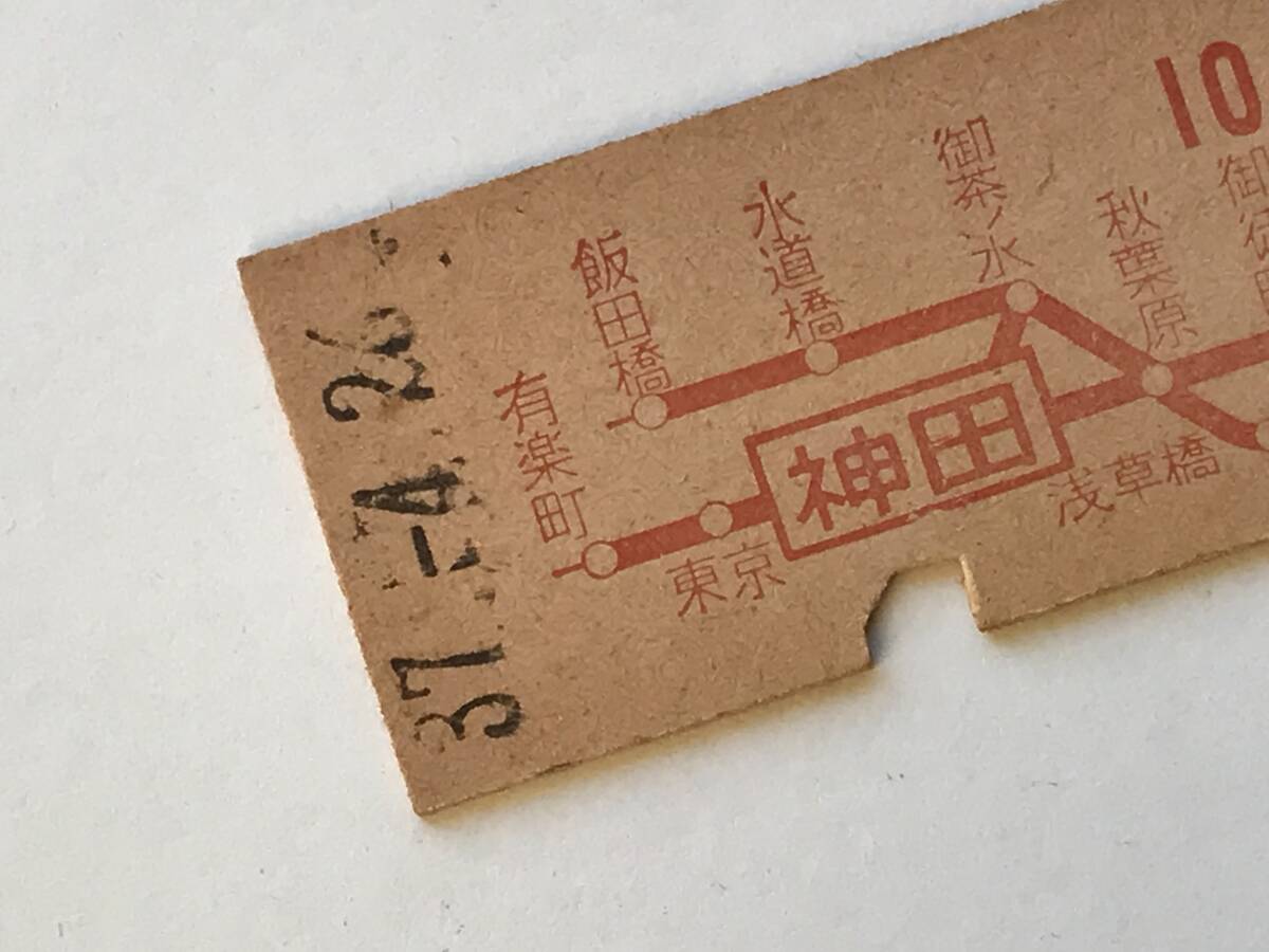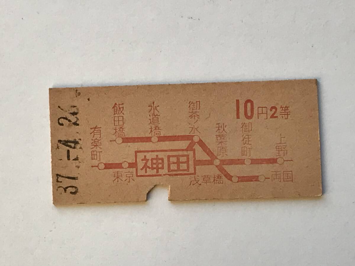 昔の切符 きっぷ 硬券 乗車券 神田駅発行 神田から10円2等 サイズ:約2.5×約5.8㎝ S37  HF5628   くるり岸田繁