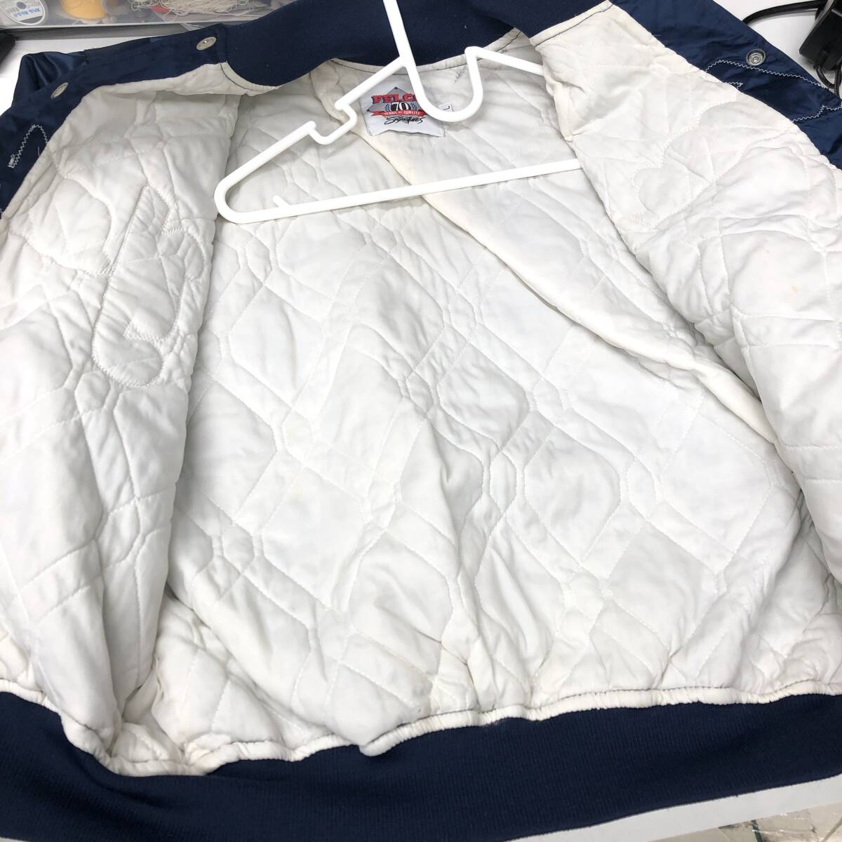 90s USA製 FELCO 70周年 スタジャン ニューヨークヤンキース NY Lサイズ ダークネイビーの出品です。