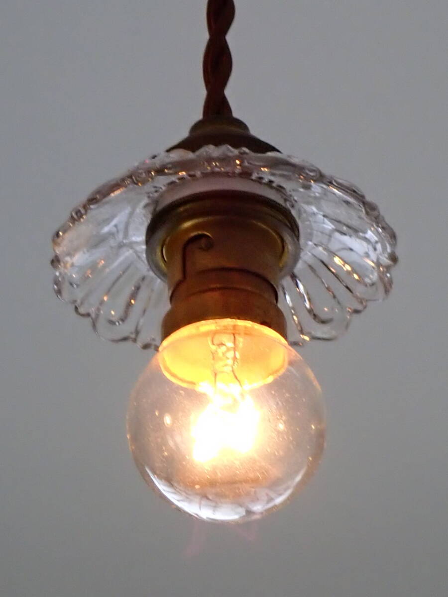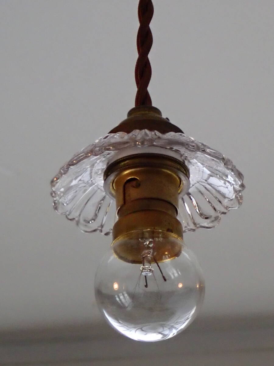 フランスアンティーク ミニシャンデリア 電球付き 吊り下げ ブロカント ペンダント ライト ランプ フリル