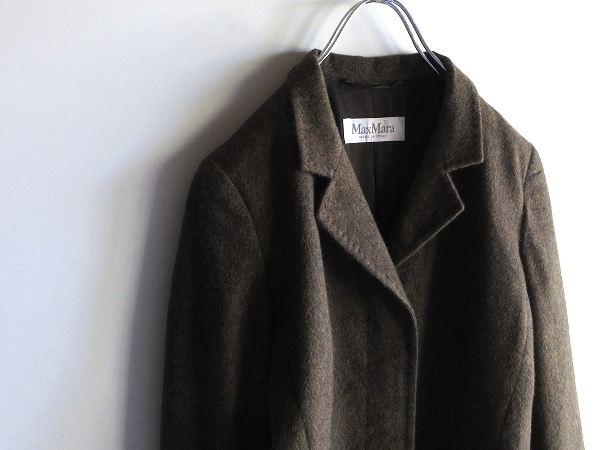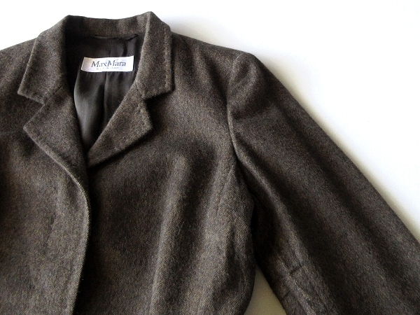 マックスマーラのジャケット。ソフトで温かなウールアンゴラ素材を使用しております。前立ては比翼仕立ての3B。滑りの良い裏地を当てておりますので、袖通しも良く仕上がっております。上質な素材使いと綺麗なシルエットで、様々なコーディネートにお使い頂ける一着です。