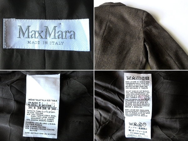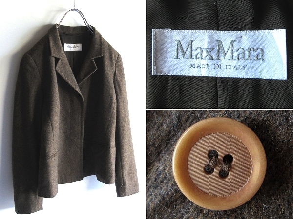 イタリア製 白タグ Max Mara マックスマーラ ウールアンゴラ 比翼 3Bテーラードジャケット ブレザー 40 ブラウン 茶 オーティーエス正規品