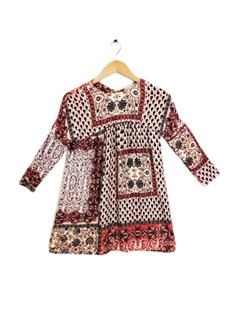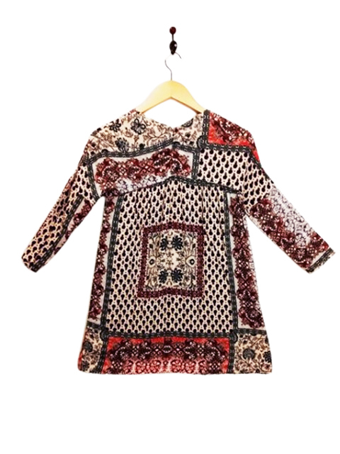 ap2844 ○送料無料 新品 (新古品) ZARA Girls ザラ キッズ ワンピース サイズ164cm ベージュ レッド 花柄 チュニック ギャザー 七分丈