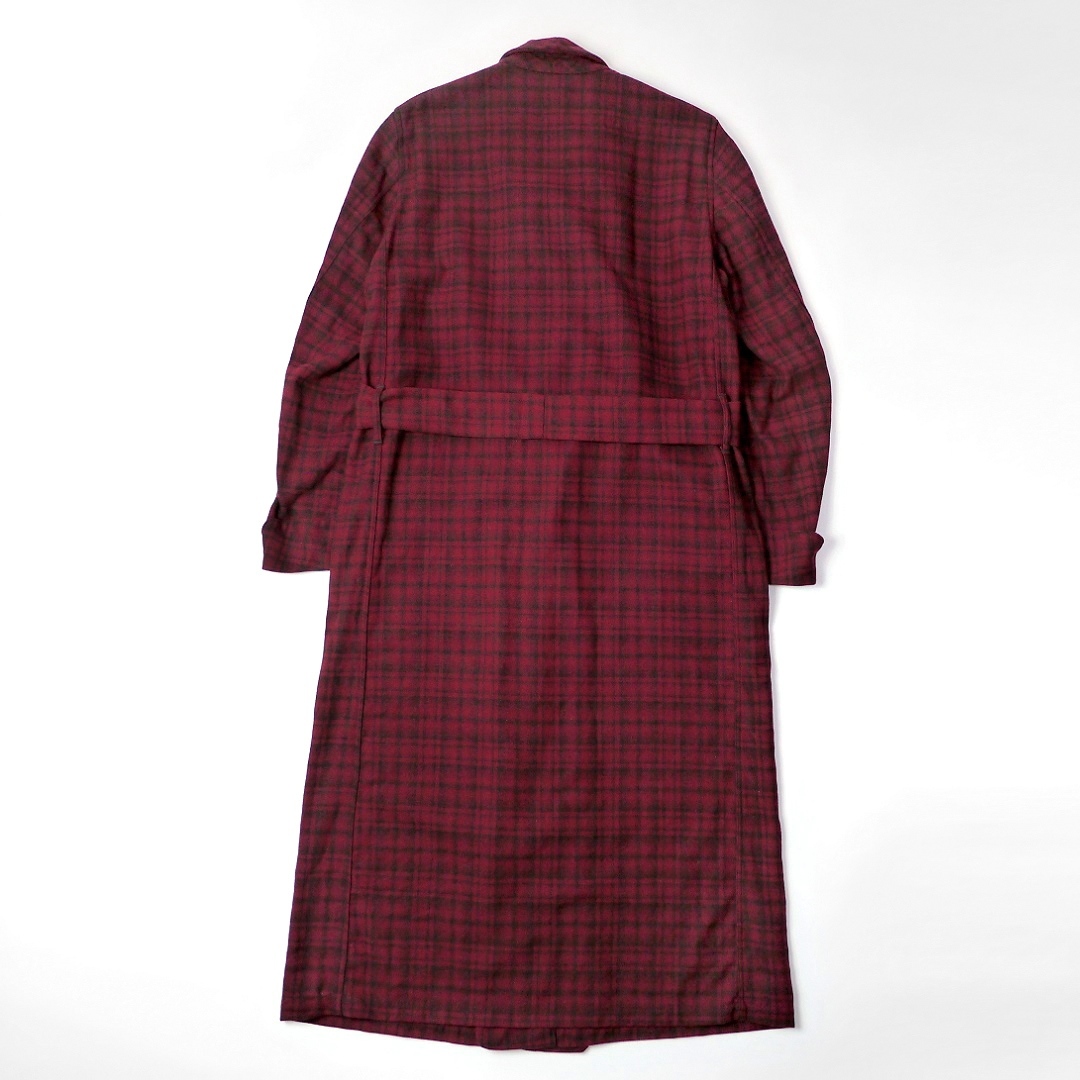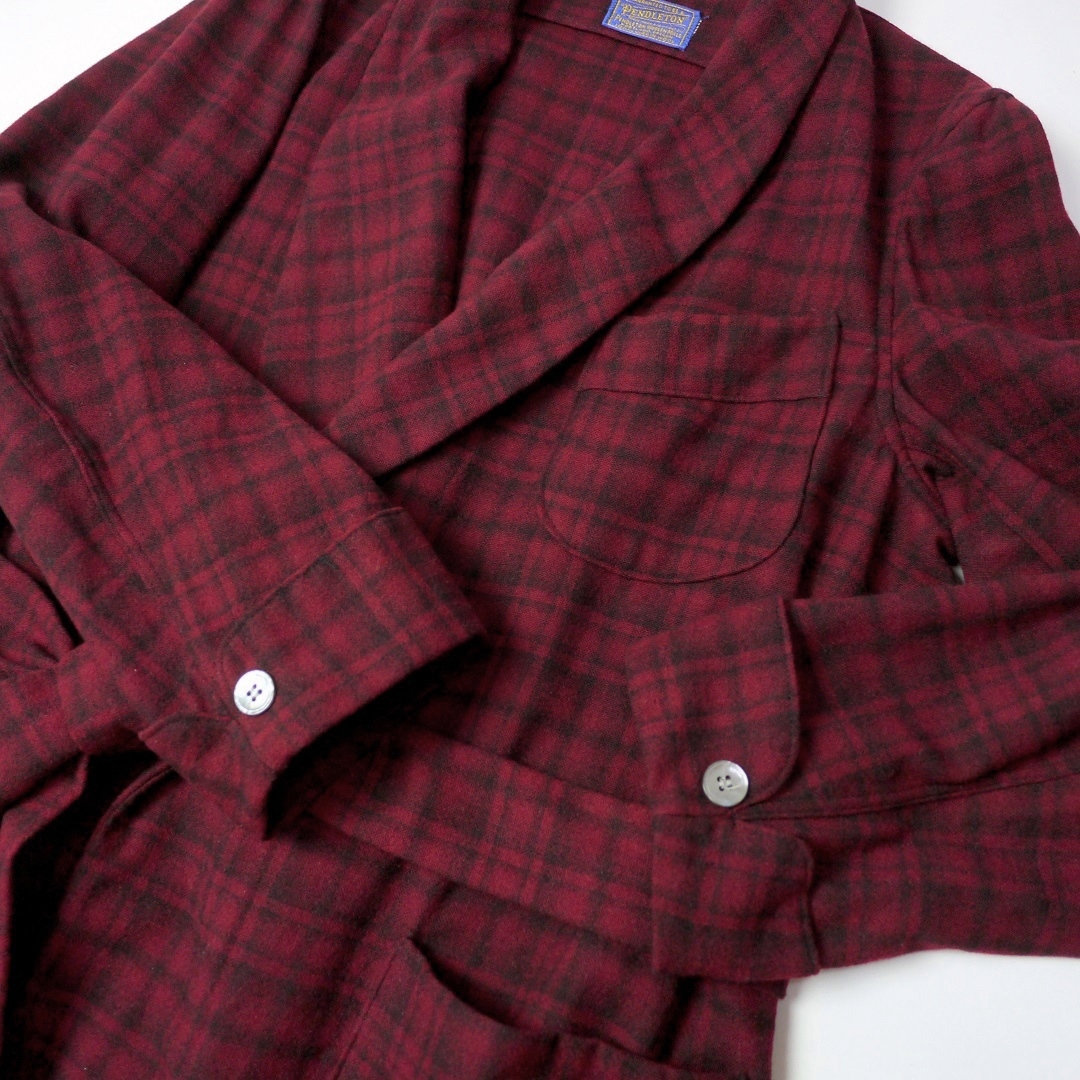 ■ブランド 40s、PENDLETON WOOLEN MILLS ■カラー 赤×黒、ダークレッド系 ■素材 100% VIRGIN WOOL ■詳細 アメリカで購入したペンドルトンのウールガウン/ローブです。 貴重な40年代ごろのアイテムで欠損しがちなベルトもシッカリと残っております!! オンブレ/シャドーチェックのような珍しいチェックパターンで最高に雰囲気があります。 ショールカラーやポケットデザイン、ダブルカフスなどのディテールもイイ感じです。 ■状態 特に目立ちませんが背中などウール起毛にミリ単位のスレ、襟や肩袖など縮みによる多少のシワ感あり。 それほど使用感は多くなく全体的に良好です。 ■サイズ 表記 S ウールシャツとして肩幅であわせるとメンズ着用感はS相当だと思います。 着丈袖丈は長めのつくりです *下記参考下さい 着丈 121cm 肩幅 42cm 身幅 55cm 裄丈 78cm 脇袖丈 43cm 肩袖丈 61cm ■注意事項 状態は細かく確認しておりますが、傷や汚れの見落とし、実寸誤差、色味差異など生じる場合がございます。 不明な点がありましたら入札前にご質問下さい。 商品にあわせて洗濯やクリーニングメンテナンスを施しておりますが、ビンテージやアンティークなど中古品になりますので特性のご理解をお願いします。 |
