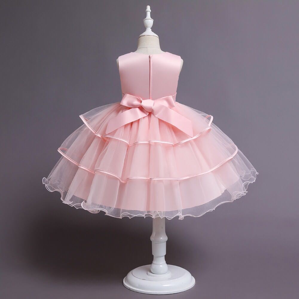 可愛い刺繍で膝上の丈になります。とてもふんわりのドレスです。結婚式、誕生日、七五三の他、バイオリン発表会、ピアノ発表会、エレクトーン発表会などにもぴったりです。