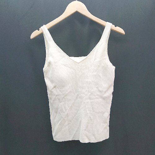 ◇ ROPE' ロペ Vネック カップ付き ストレッチ素材 シンプル タンクトップ サイズ38 ホワイト レディース E