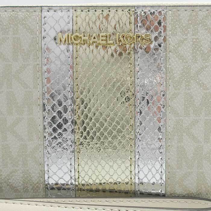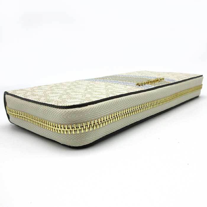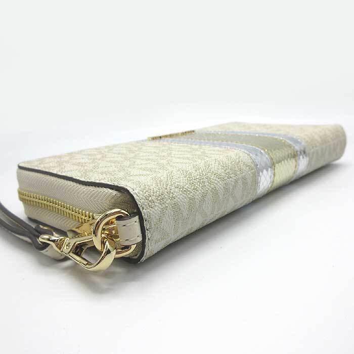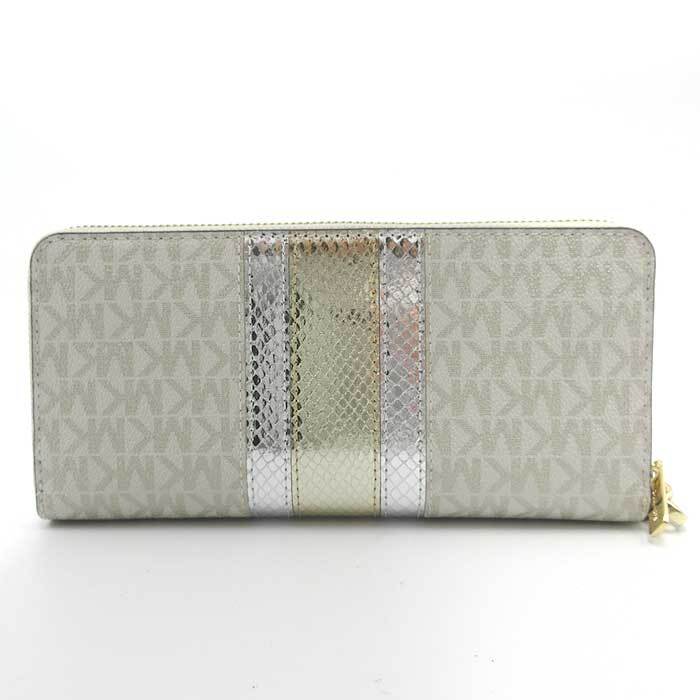 マイケルコース 長財布 MKシグネチャー メタリック ストライプ柄 パイソン調 35F4GTVE7V PALE GOLD アウトレット レディース