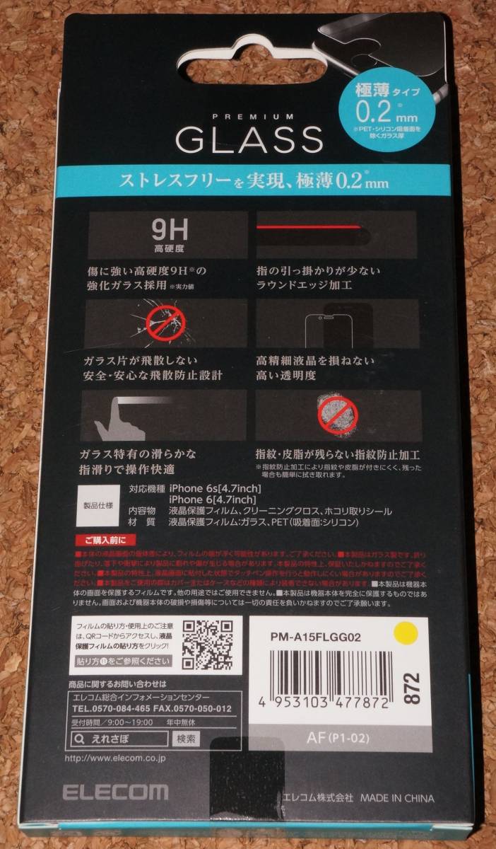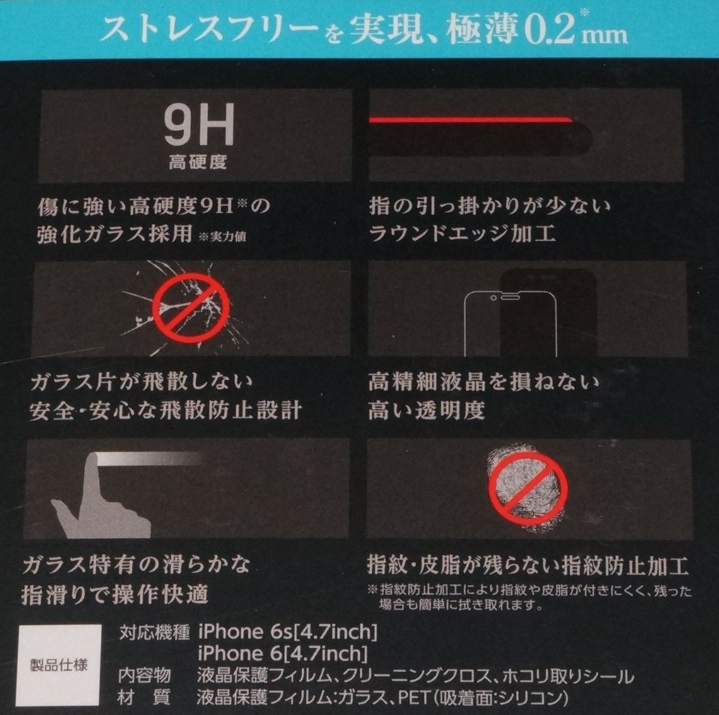 ELECOM iPhone6s/6 液晶保護ガラスフィルム 極薄 0.2mm 9H PREMIUM GLASS 新品・未開封です。