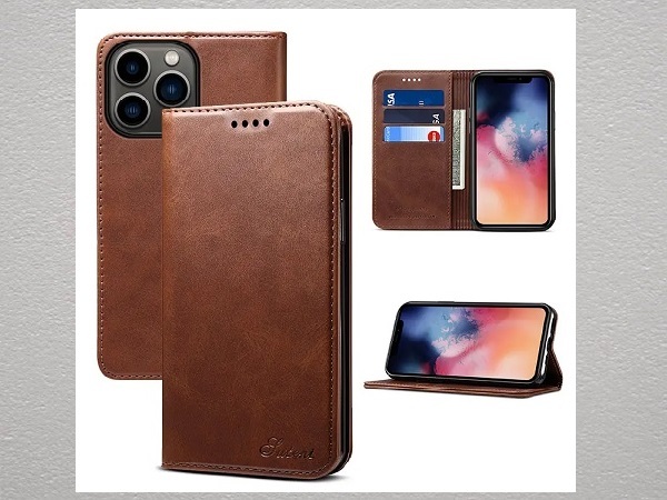 JUTENT iPhoneX / XS 手帳型ケース ブラウン 新品 ベルト無 マグネット内蔵 ストラップホール付 ソフトPUレザー スタンド機能 カード収納