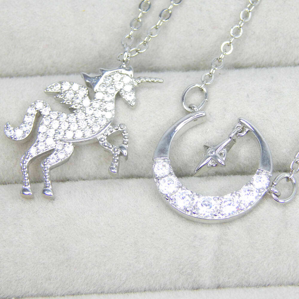 こちらはユニコーンと月のネックレスのお得な2点セットです。 ライトの下も綺麗ですが、太陽の光はさらに美しく輝きます。 肌の露出が多い夏シーズンはもちろん、秋冬シーズンにもちらりと覗かせるさり気ないオシャレにも♪ 自分用にはもちろん、誕生日や結婚記念日、母の日、バレンタインデー、ホワイトデー、クリスマスなど大切な方への贈り物にもおすすめです! 素材:シルバー925/CZジルコニア ストーンカラー:ホワイト 金具カラー:シルバー サイズ:2.1*1.4㎝ 首回りチェーン:38+5㎝ ※生産時チェーンのデザインが変更になる場合がございます。 商品状態:新品未使用 実物写真なのでデザインはお写真をご確認ください 追跡番号有りにてお届けになります。 通常緩衝材により補強した簡易梱包になります。 お使いのブラウザや光の加減等により画像の色が多少異なって見える場合がございます。 到着時に不具合がございましたらお受け取り通知前にメッセージよりご連絡ください。 | |||