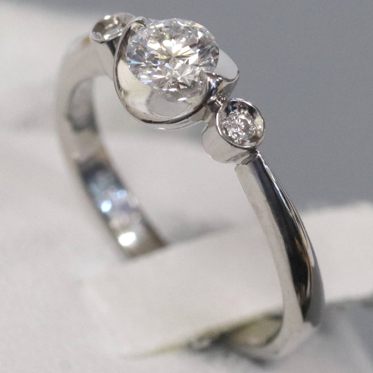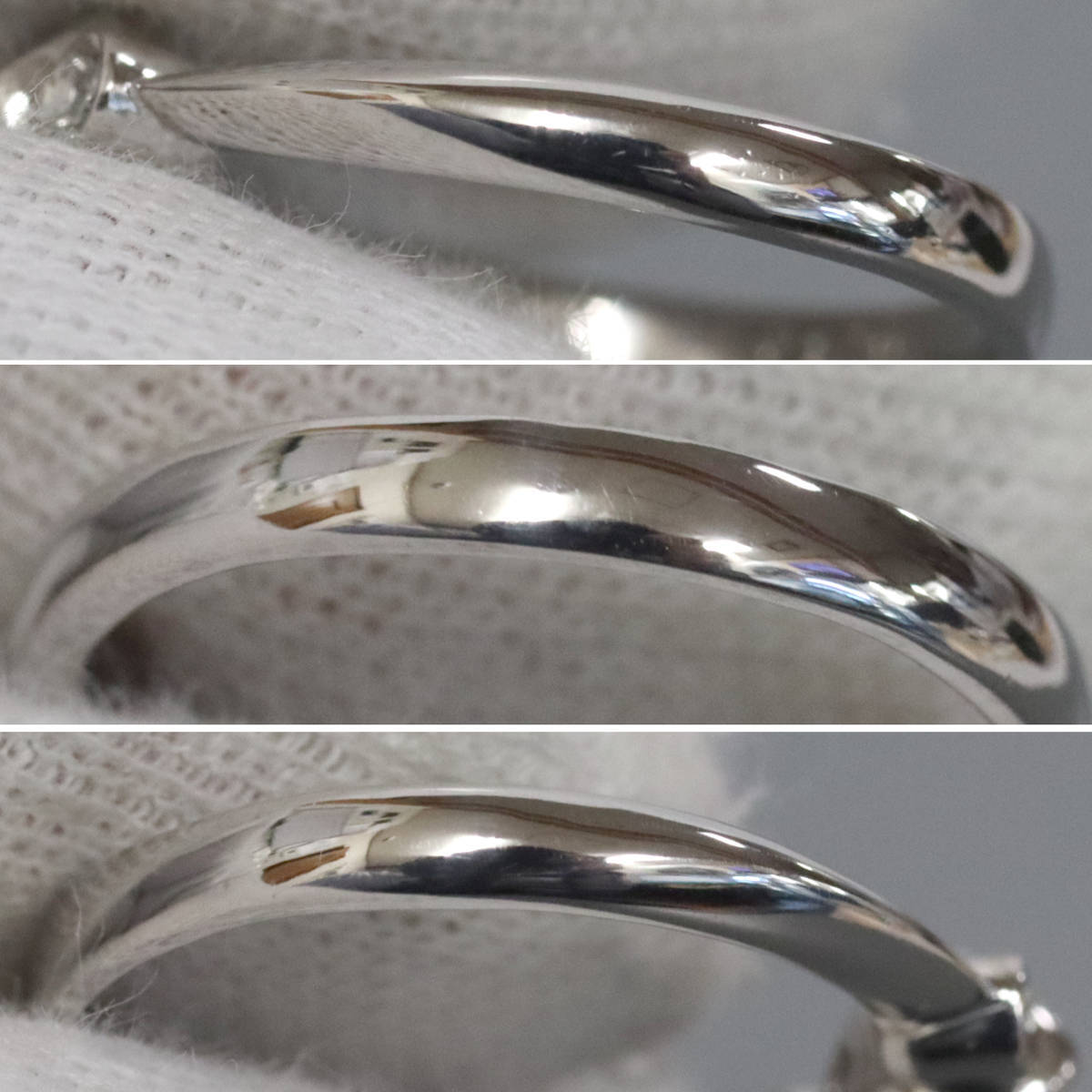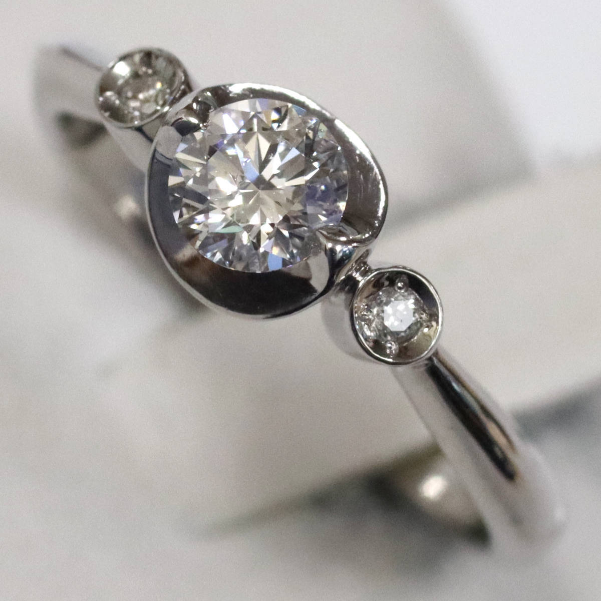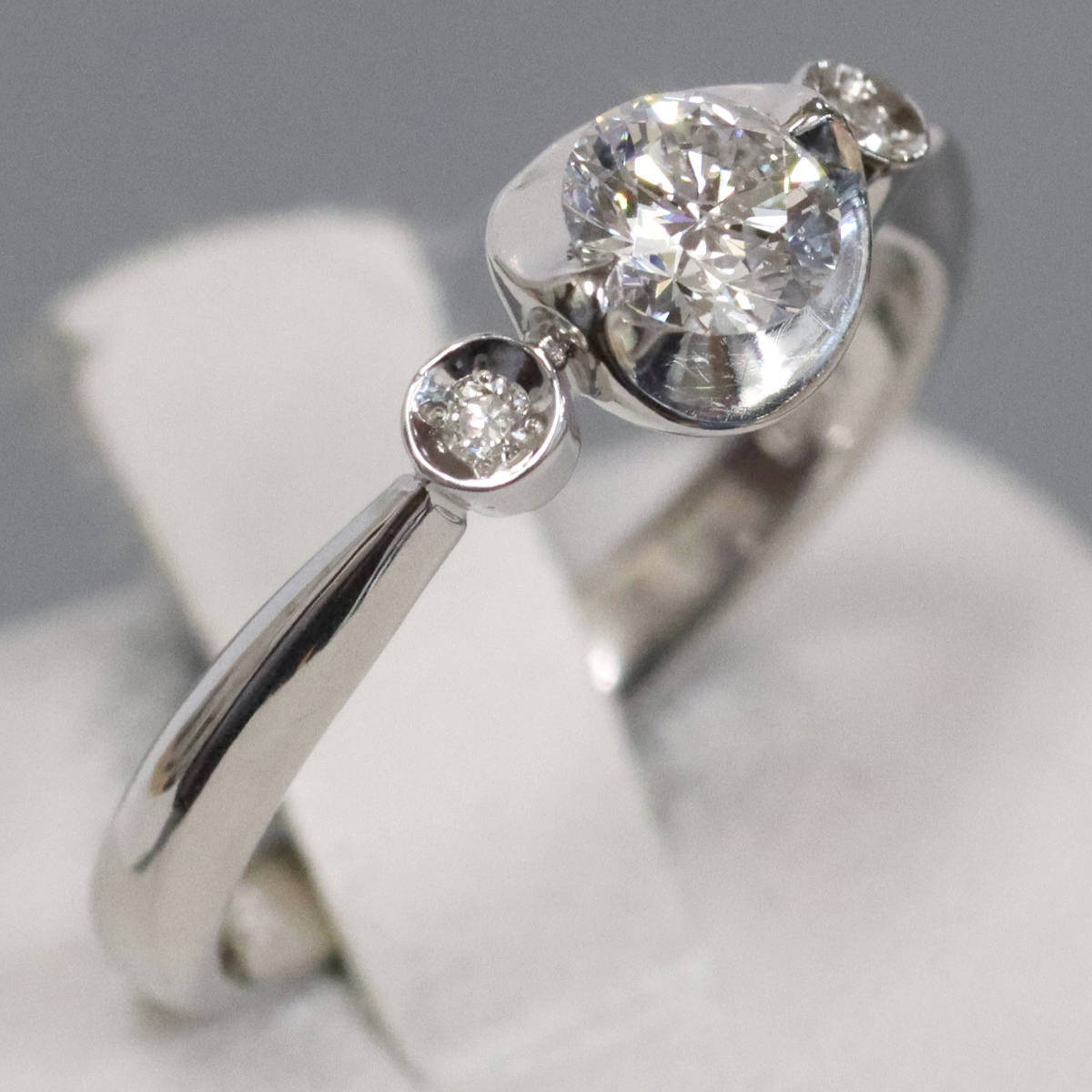 シネマのK18WGダイヤモンドリングの中古品です。 3ポイントのダイヤモンドがセットされております。 ダイヤモンドは、インクルージョンはありますが、お色味良く、輝きがあります。 地金に小傷があります。