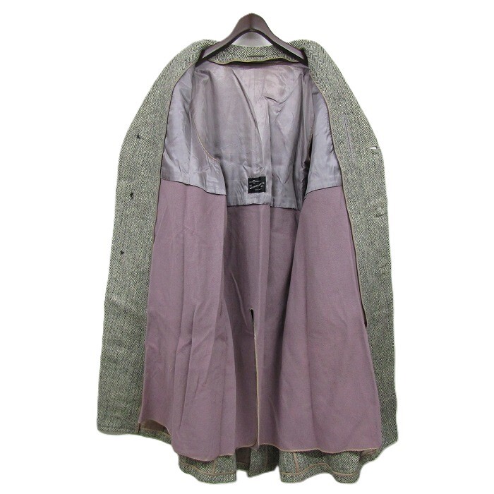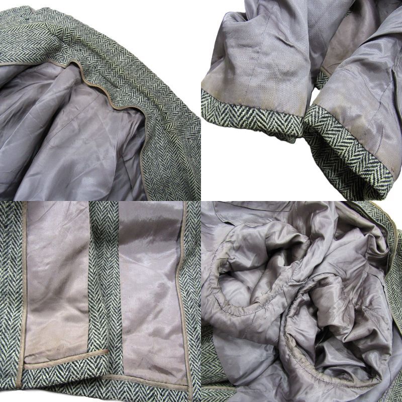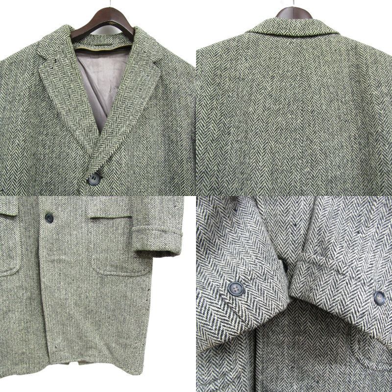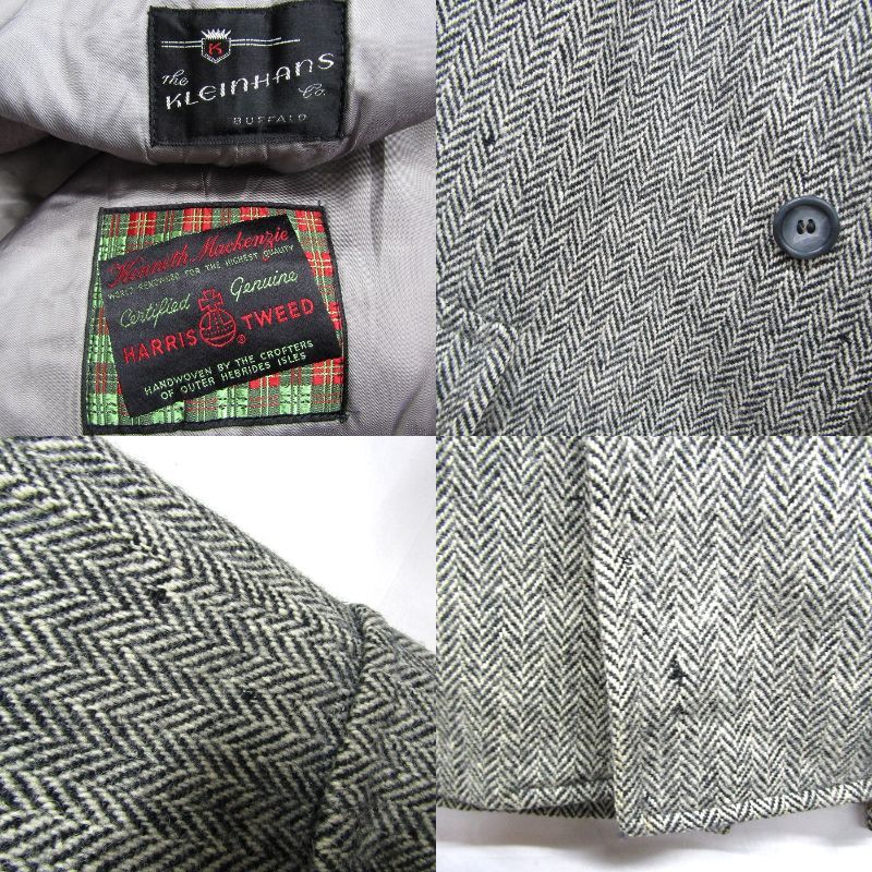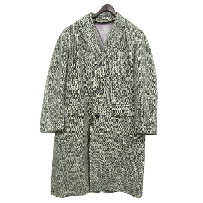 サイズ ? Kleinhans Harristweed ウール ロング チェスター コート ヘリンボーン ハリスツイード 古着 ビンテージ 4D0305