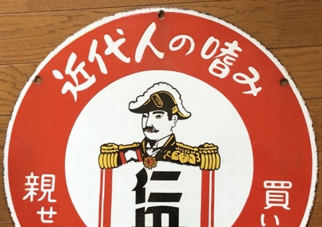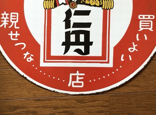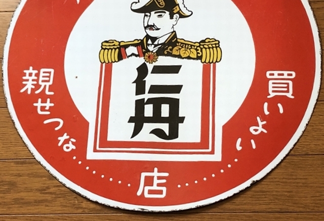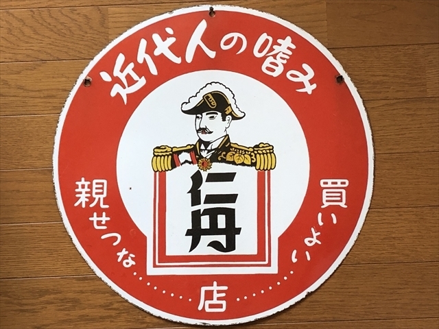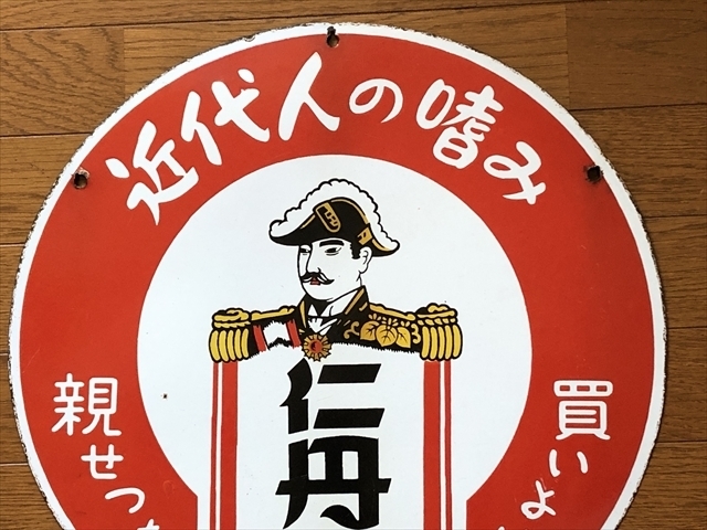 即決【昭和レトロ百貨店】近代人の嗜み 仁丹 両面 ホーロー看板 ビンテージ 広告 当時物 琺瑯 円形