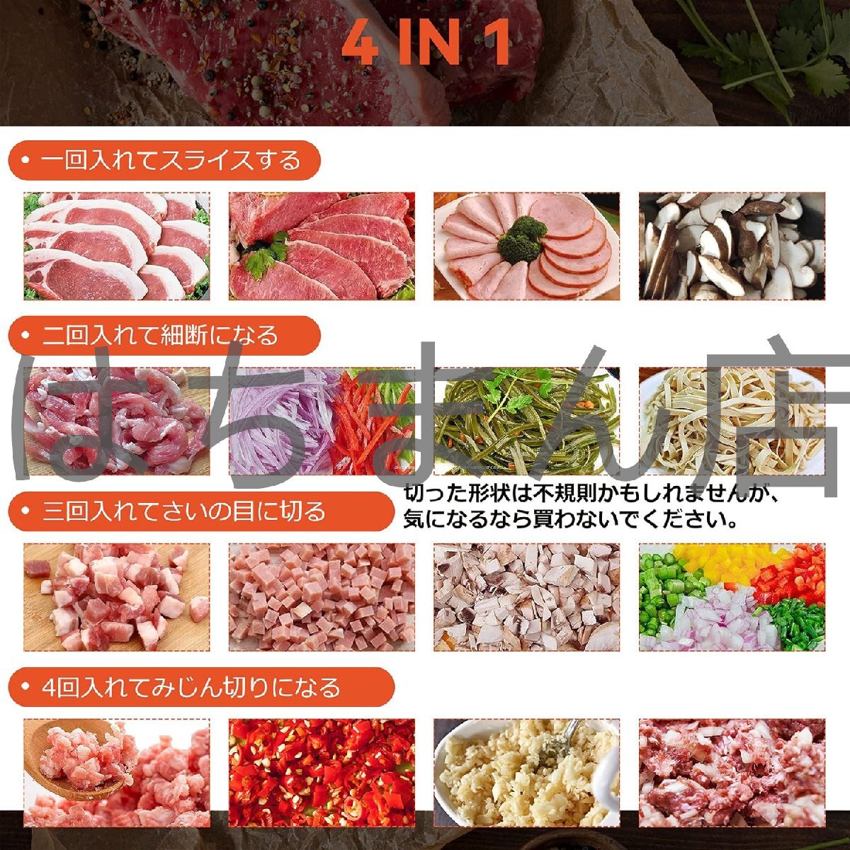 【二重の安全保障】---肉切り機には安全保護スイッチが付いています。ブレードが露出すると、マシンはロックして起動できなくなります。また、赤い過負荷ボタンがあり、過負荷になると、過負荷ボタンを回してマシンを再起動するまで、マシンは自動的に停止します。店舗をご確認ください:はちまん店、他の同デザインは全て海賊版でございます、品質は保証されていません、慎重に購入してください。