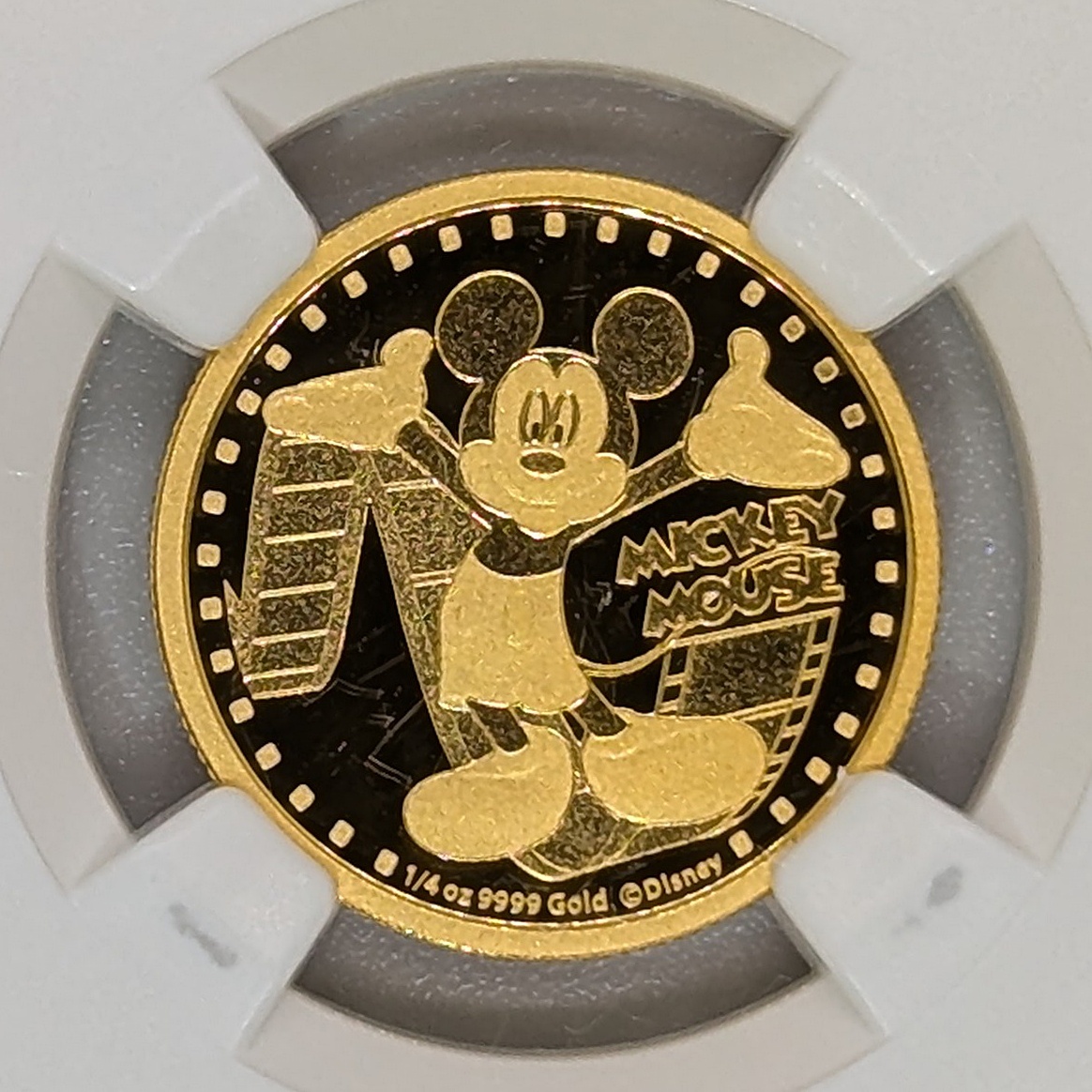 2014年発行に発行されたミッキーマウスがデザインされた純金(.9999)の1/4オンス金貨と純銀(.999)の1オンス銀貨を2枚セットにしました!