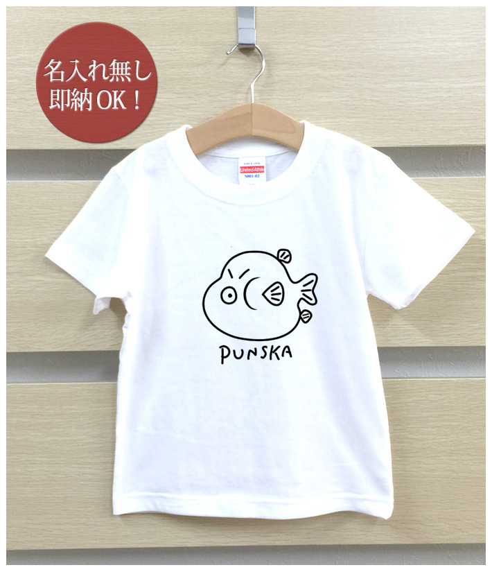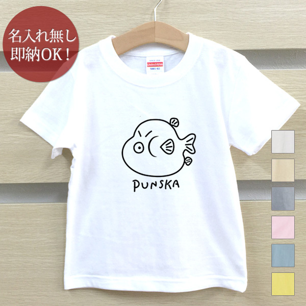 ぷっくりふくれっ面になったフグのイラストのベビー&キッズTシャツです。河豚好き、魚好きのお子様へのプレゼントに♪