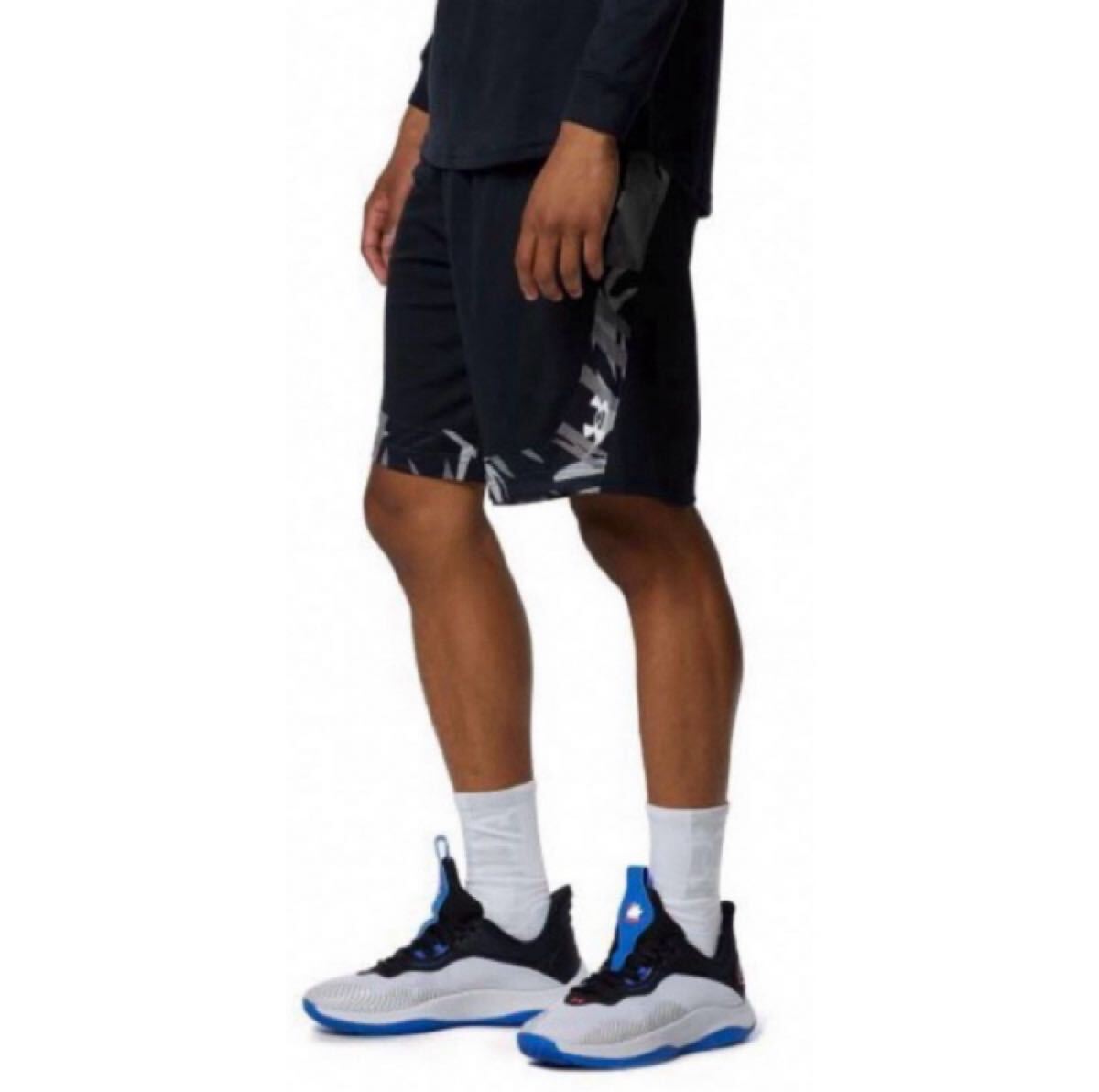 通気性を高めるために切替部にメッシュ素材を使用したバスケットボールショーツ。動きを妨げないルーズフィットのシルエット。