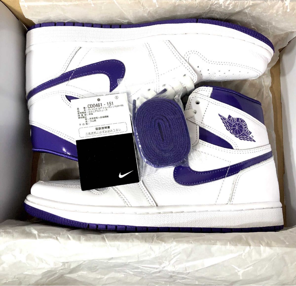 26.5cm Nike Women's Air Jordan 1 High OG Court Purpleナイキ ウィメンズ エアジョーダン1 ハイ OG コートパープル 箱に傷みあり