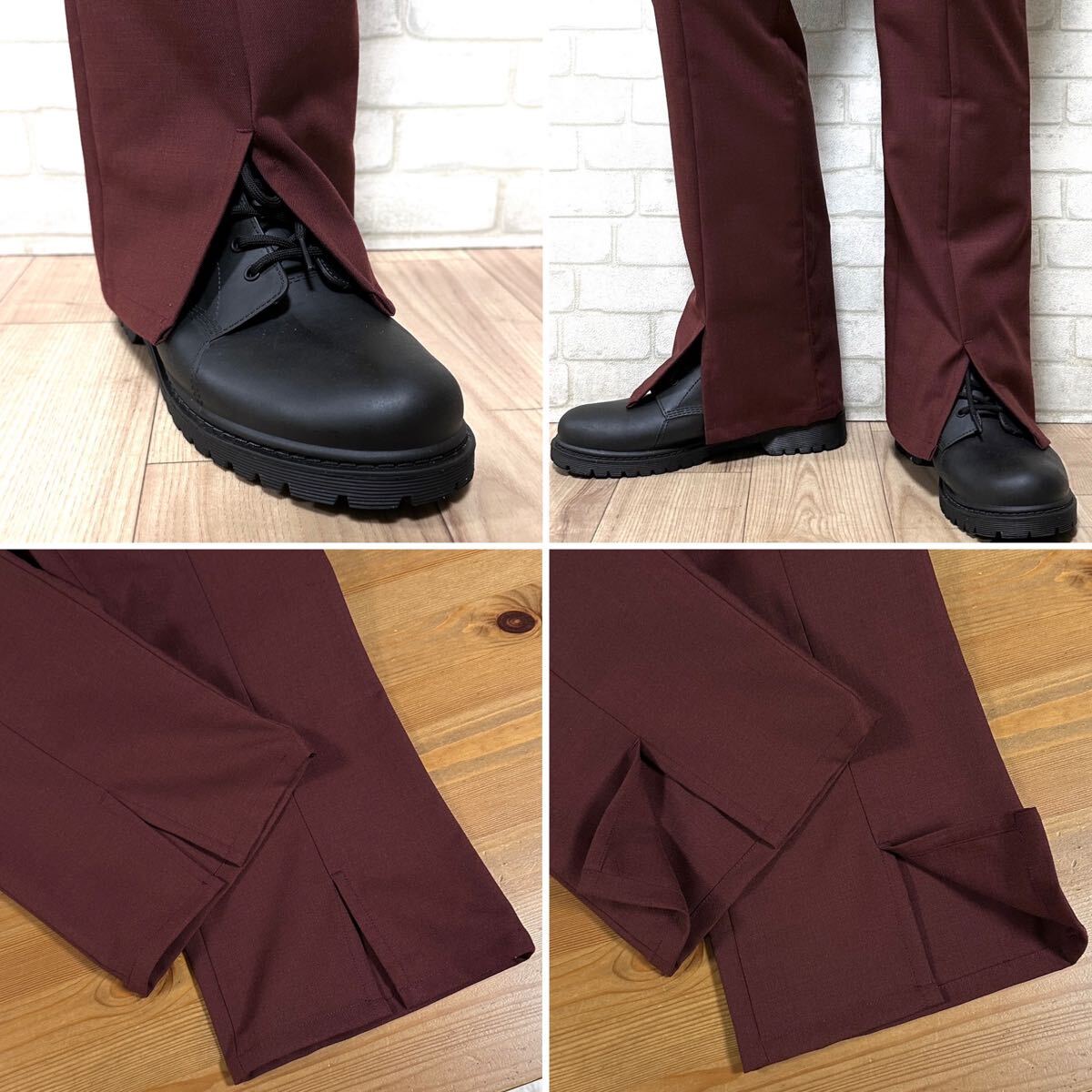 ☆センタースリットを入れたトラウザーパンツ。ブーツカットにすることで着用時のシルエットが魅力の一本。ジャケットやシャツと合わせたキレイめなスタイルから、ブルゾンやスウェット、カットソーと合わせたカジュアルなスタイルまで幅広く合わせられるアイテムです。
