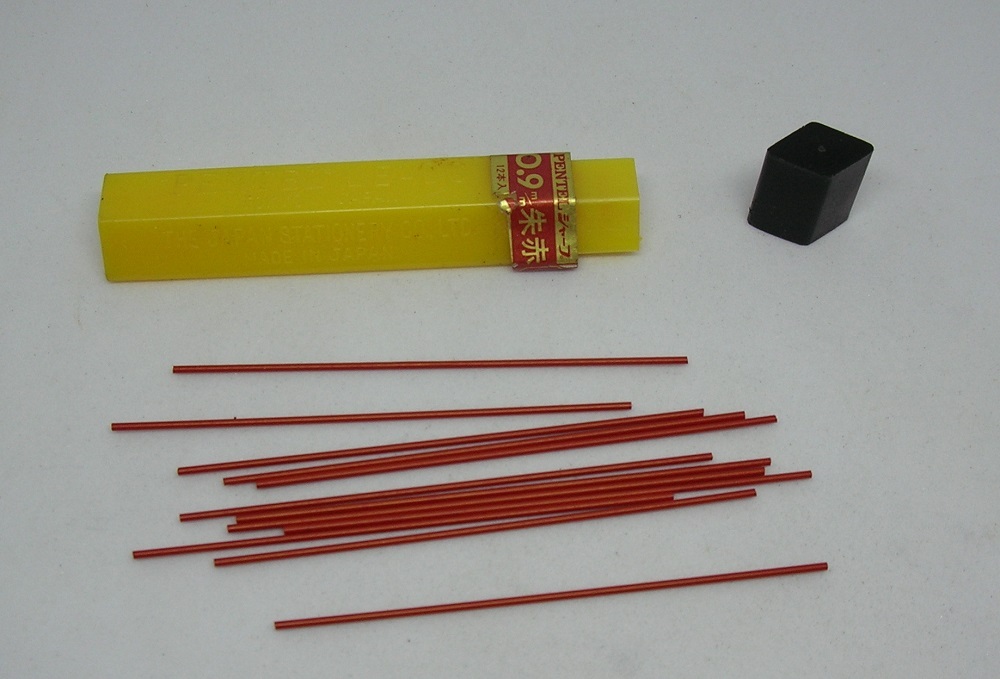 ∇∇ ぺんてる ハイポリマー(高分子) 0.9mm 替え芯 初期ケース入り 朱赤 デットストック ∇∇
