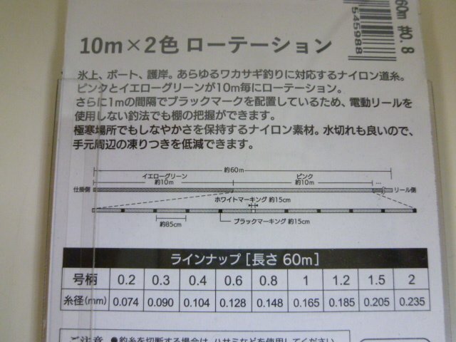 ・長さ 60m ・号柄 0.8号 ・糸径 0.148mm | |