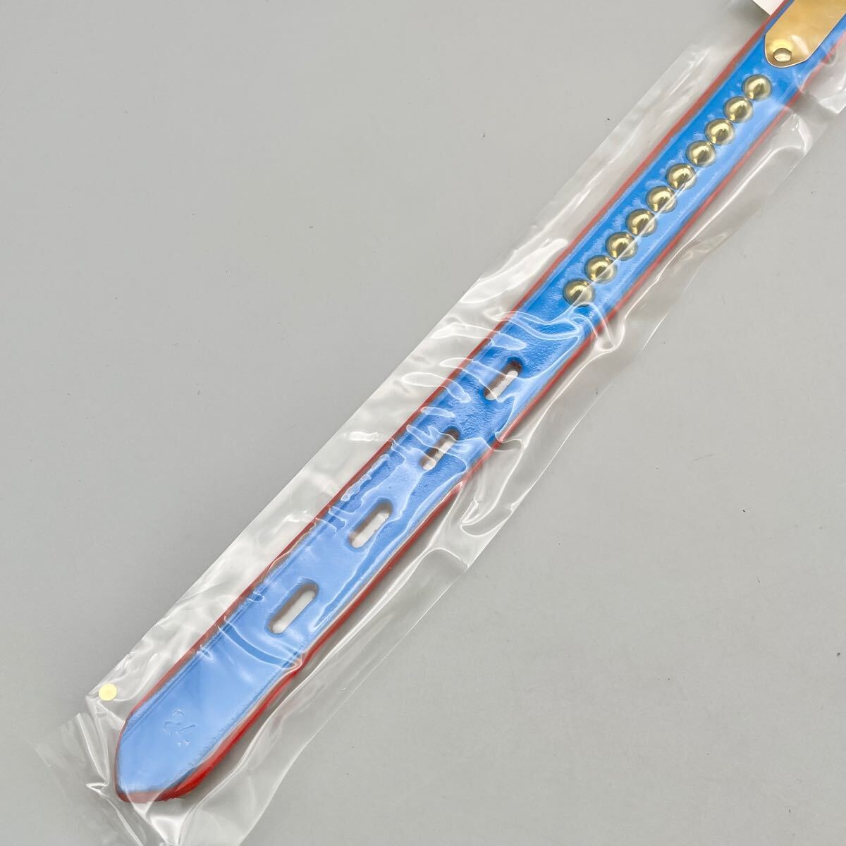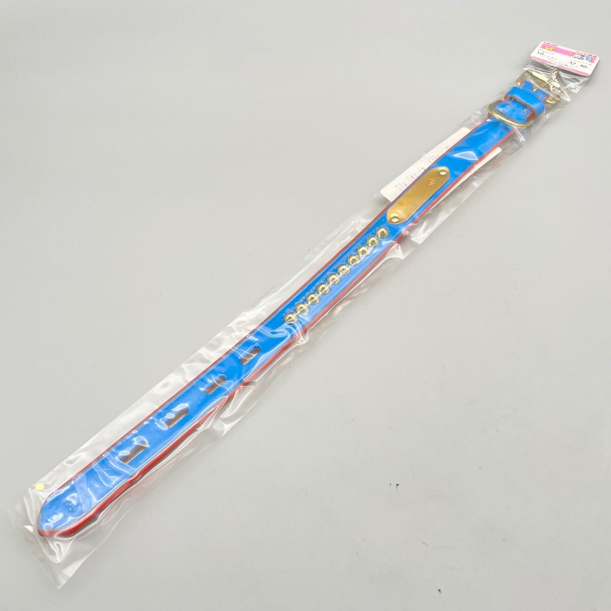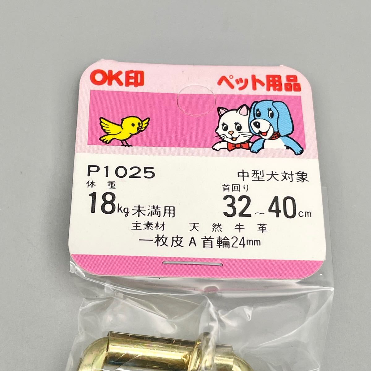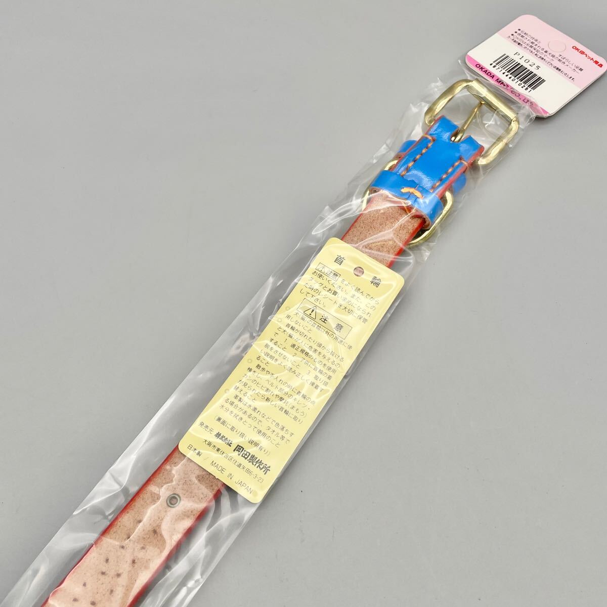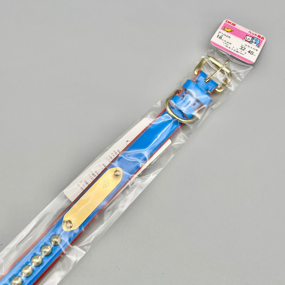 [新品 未使用品] OK印 本革 首輪 P1025 ペット用品 32~42cm 中型犬用 一枚皮 牛皮革 レザー 青 ブルー ベルト 散歩 グッズ 金物屋 在庫品