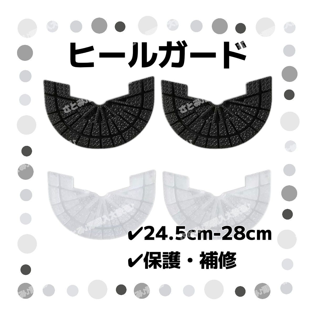 ヒールガード 4枚セット 2足分 ソールガード スニーカー プロテクター 保護 補修 24.5cm-28cm ブラック クリア
