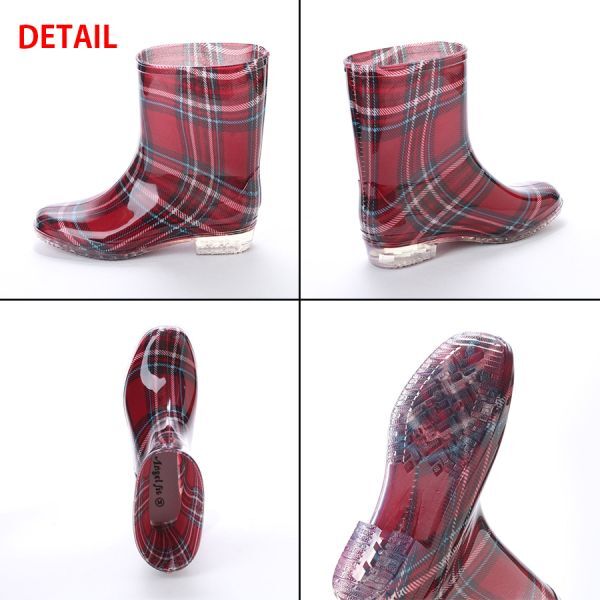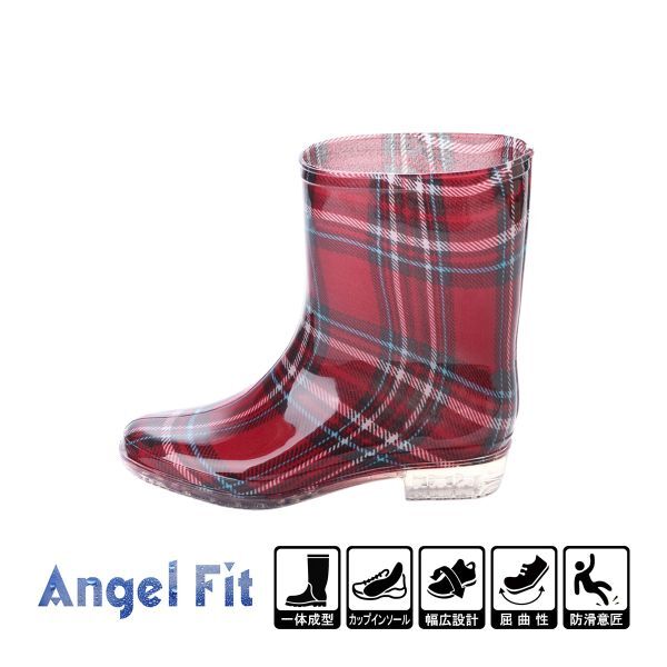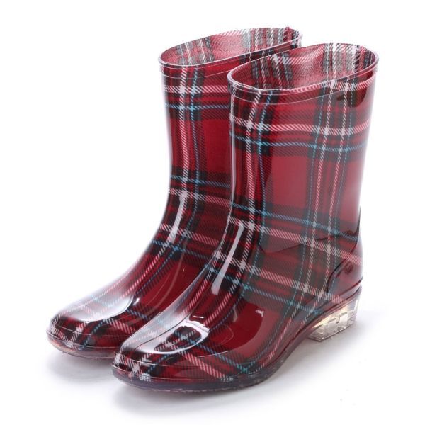 15030 アウトレット レディース レインブーツ Sサイズ 22.0-22.5cm RED/CHK (レッドチェック) ミドルブーツ 長靴