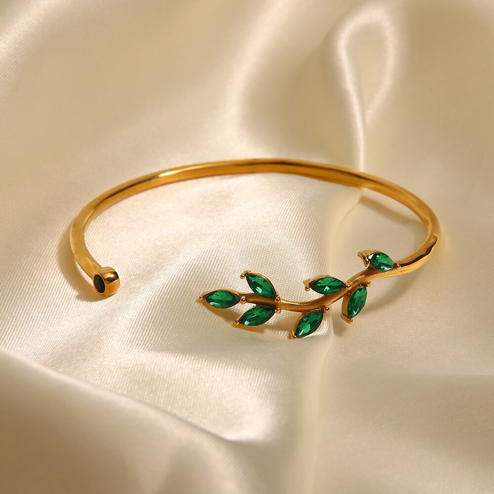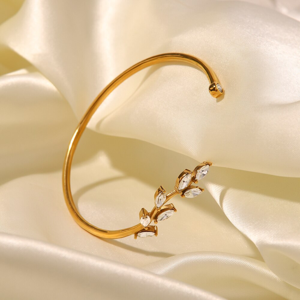 海外からの発送となりお届けに2週間程度頂きます。予めご了承くださいませ。商品名18k ゴールド プレート ステンレス スチール ジュエリー パーティ ギフト レトロ 白 ホワイト キュービック ジルコン ジルコニア オープニング 葉っぱ 木の葉 リーフ バングル ファッション ビジュースペックチェーンタイプ-リンクチェーンパターン:幾何学的セッティングタイプ:なし材料:金属スタイル:トレンドクラスプタイプ:スプリングリングクラス性別:レディース金属タイプ:ステンレスブレスレットタイプ:チェーンおよびリンクブレスレットアイテムタイプ:ブレスレットファインジュエリーズFineJewelrys新作