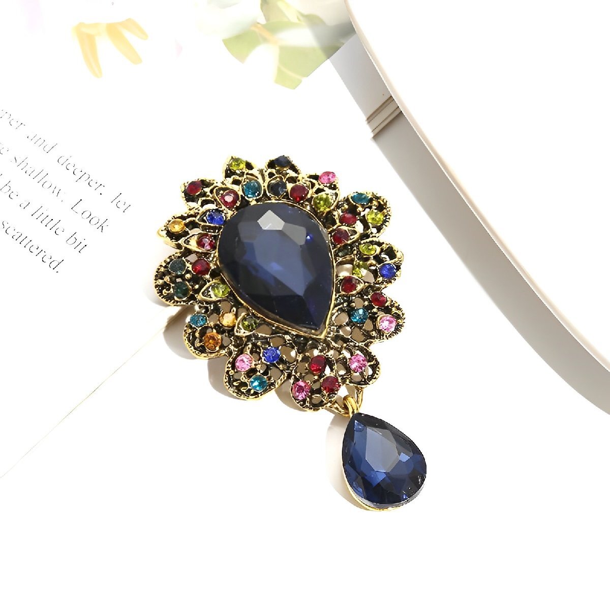 高級 菱形 キラキラ レトロ ブローチ/ブルー