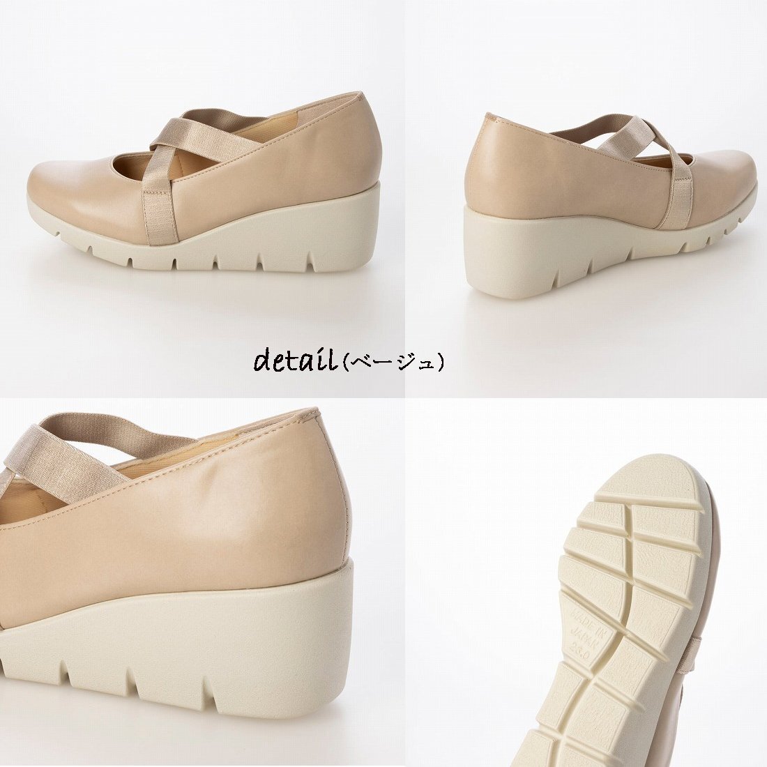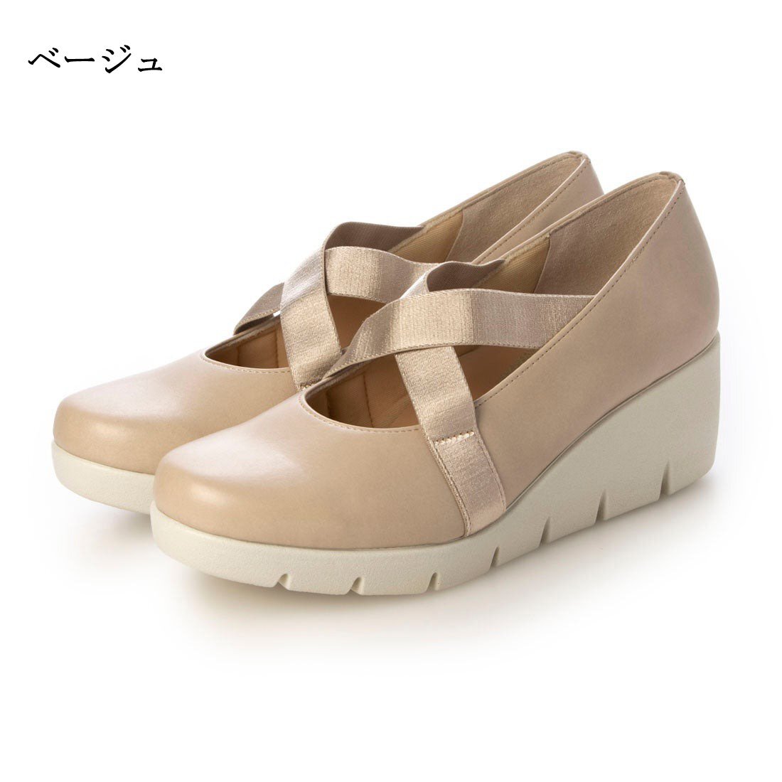 34lk ファーストコンタクト パンプス レディース 日本製 クロスベルト 痛くない 母の日 ウェッジ 走れる 厚底 カジュアル 結婚式 低反発