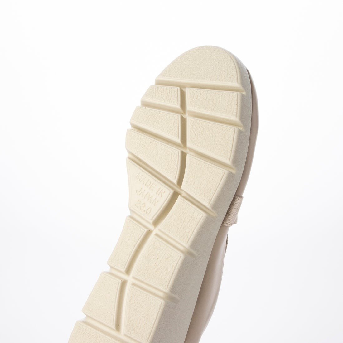 甲のストラップは隠しゴムによりそのまますっぽり履いていただけます。