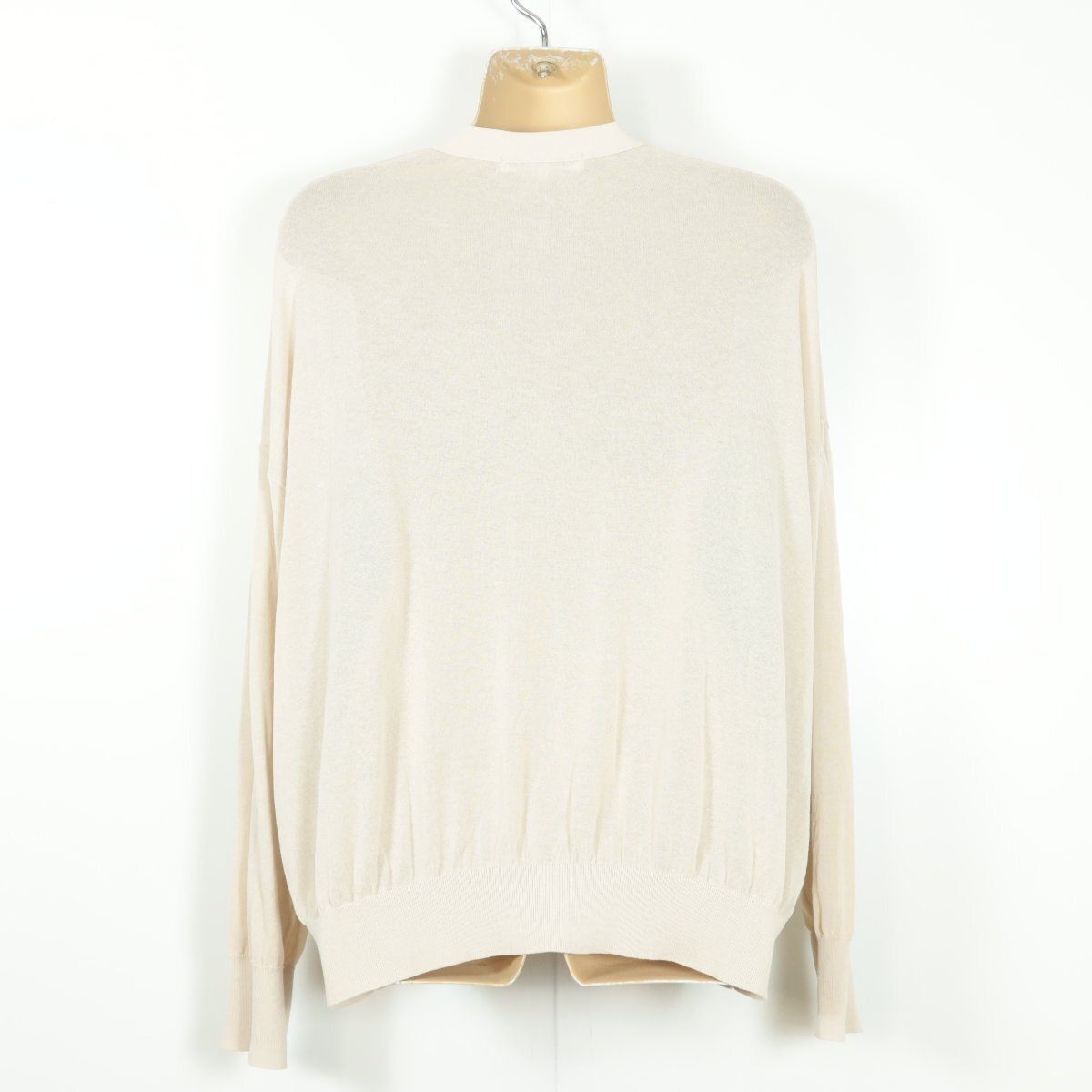 | 商品説明 | 【実寸約】肩幅62袖丈46バスト120着丈58cm 【サイズ表記】 46(B92-96T160-164) 【素材】綿66ナイロン34% 【状態】普通の使用感のあるお品物 【デザイン】 ベージュ系 フェミニンな長袖カーディガンです。 ナチュラルなシアー感がおしゃれ! フロントはボタンで開くデザイン。 裏地なし。ポケットなし。肩パッドなし。 薄手で冷房対策にもぴったり♪ 落ち着いた色合いで着回しに重宝する一枚です。 |