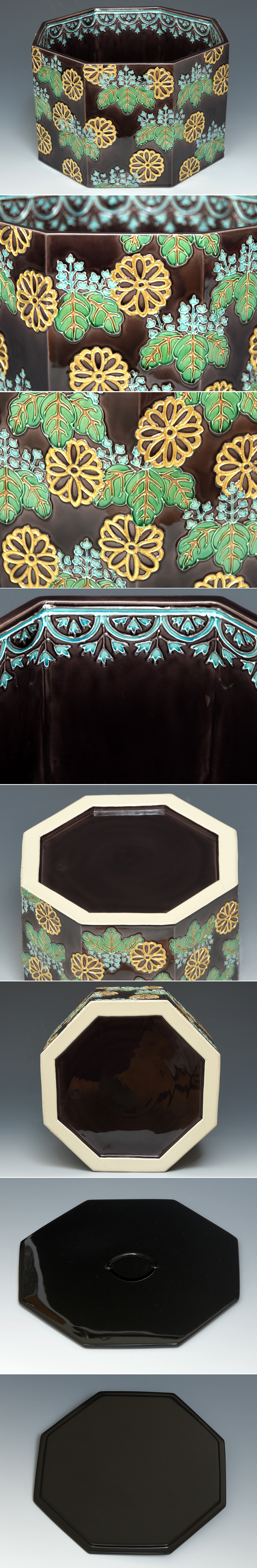 中村翠嵐(造)紫交趾菊桐水指 八角水指 定価48万円 共箱 共布 しおり 陶磁器 京焼 茶道具 |