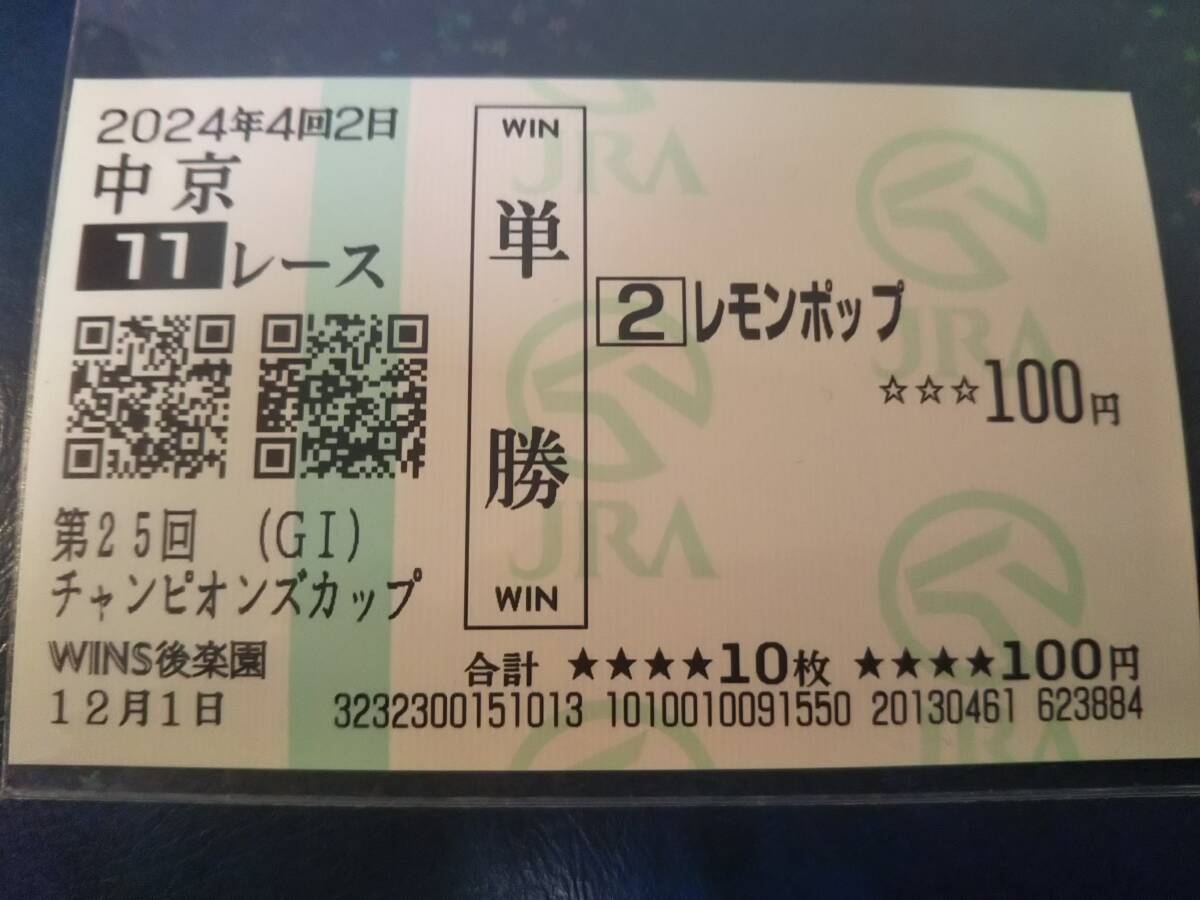 [単勝馬券 レモンポップ]☆2024年12月1日/第25回_チャンピオンズカップ(GⅠ)★的中馬券☆69.1